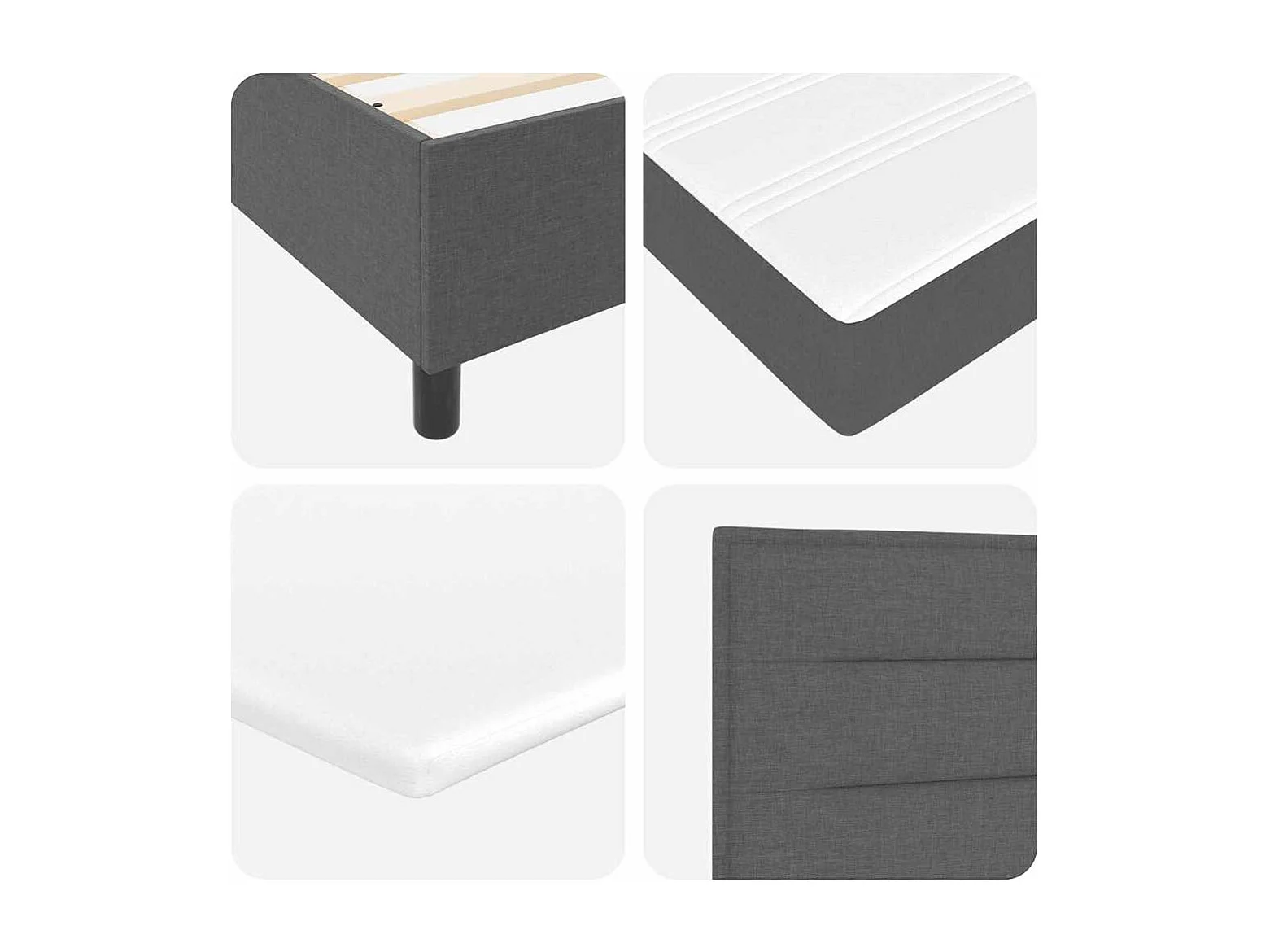 Lit à ressorts avec matelas Gris foncé 180 x 200 cm tissu
