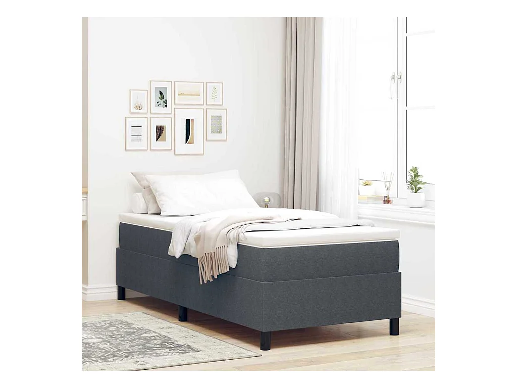 Lit à ressorts Gris foncé 90 x 190 cm Tissu en velours côtelé
