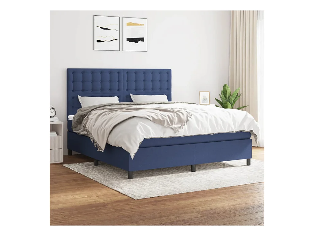 Lit à sommier tapissier avec matelas Bleu 160x200 Tissu 3