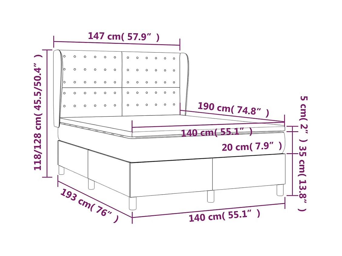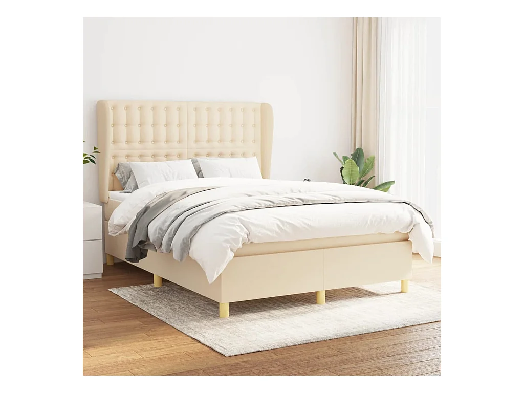 Lit à sommier tapissier avec matelas Crème 140x190 cm Tissu
