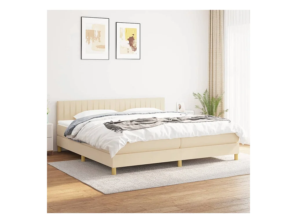 Lit à sommier tapissier avec matelas Crème 200x200 Tissu 7