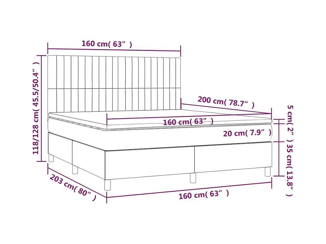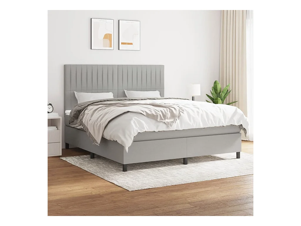 Lit à sommier tapissier avec matelas Gris clair 160x200 Tissu 7