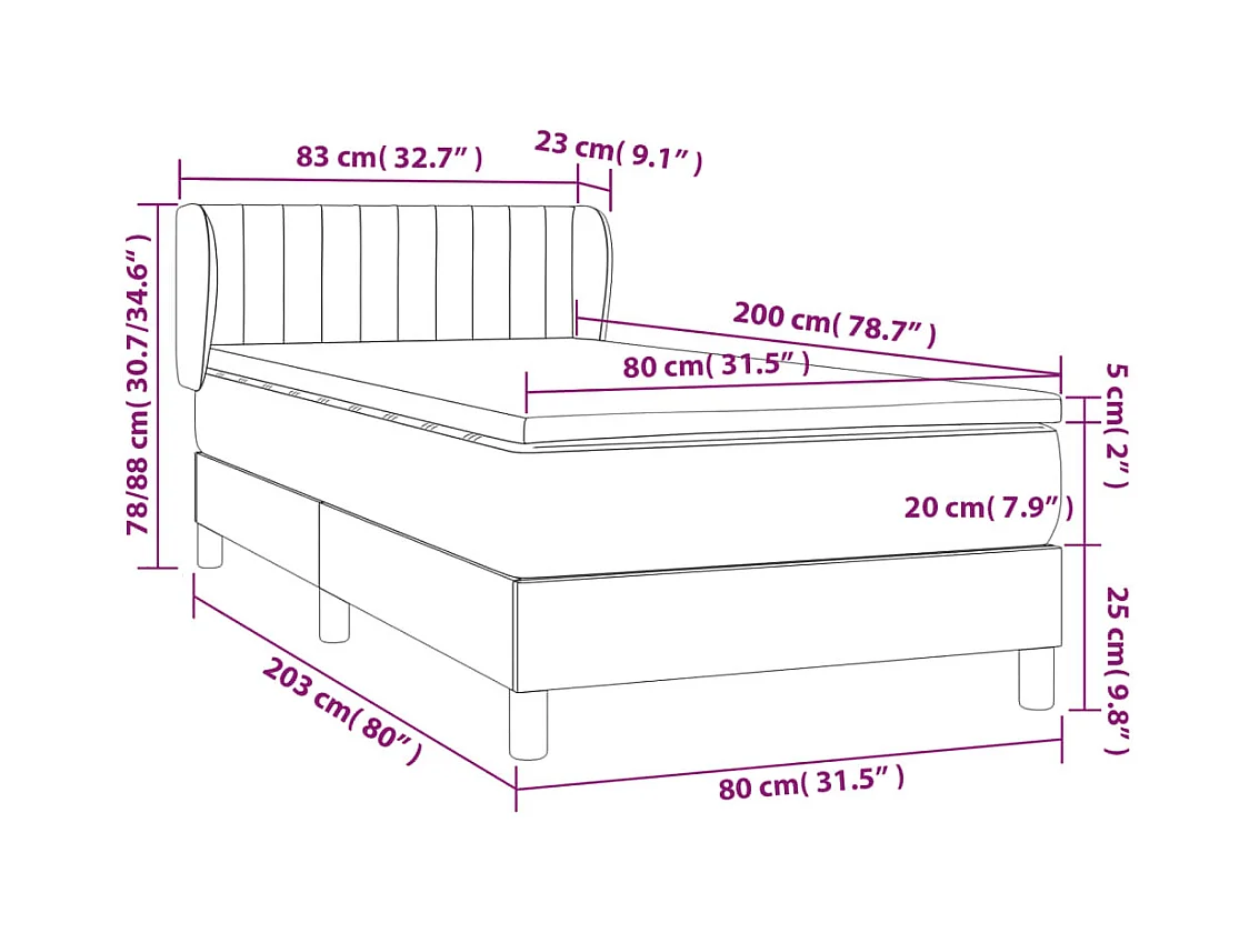 Lit à sommier tapissier avec matelas Gris clair 80x200 Tissu 7