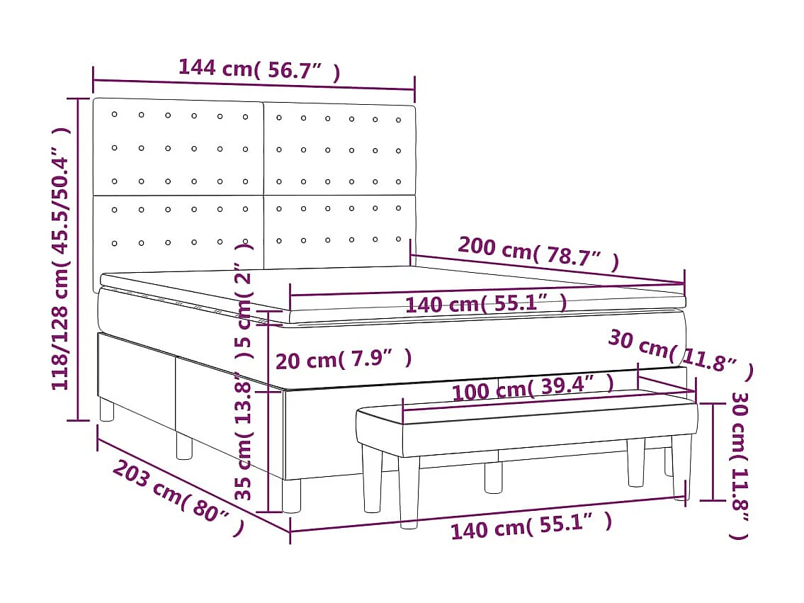 Lit à sommier tapissier avec matelas Gris foncé 140x200 Tissu