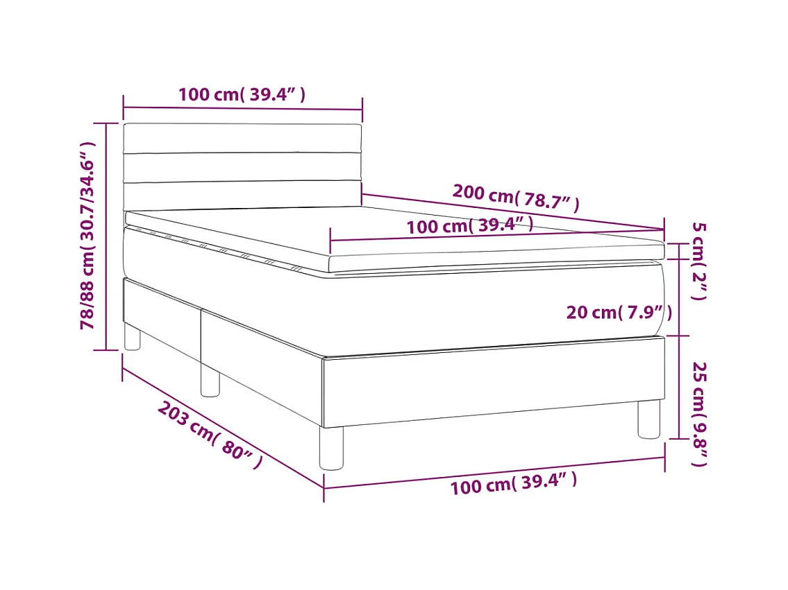 Lit à sommier tapissier avec matelas Marron foncé 100x200