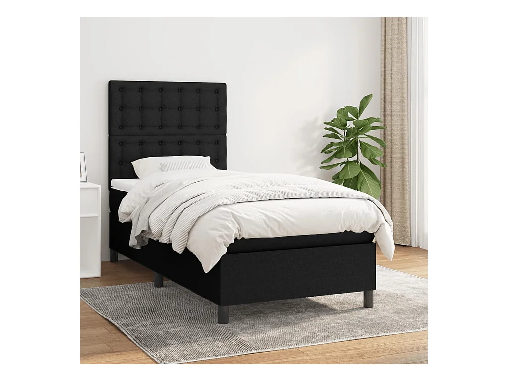 Lit à sommier tapissier avec matelas Noir 90x200 Tissu 2