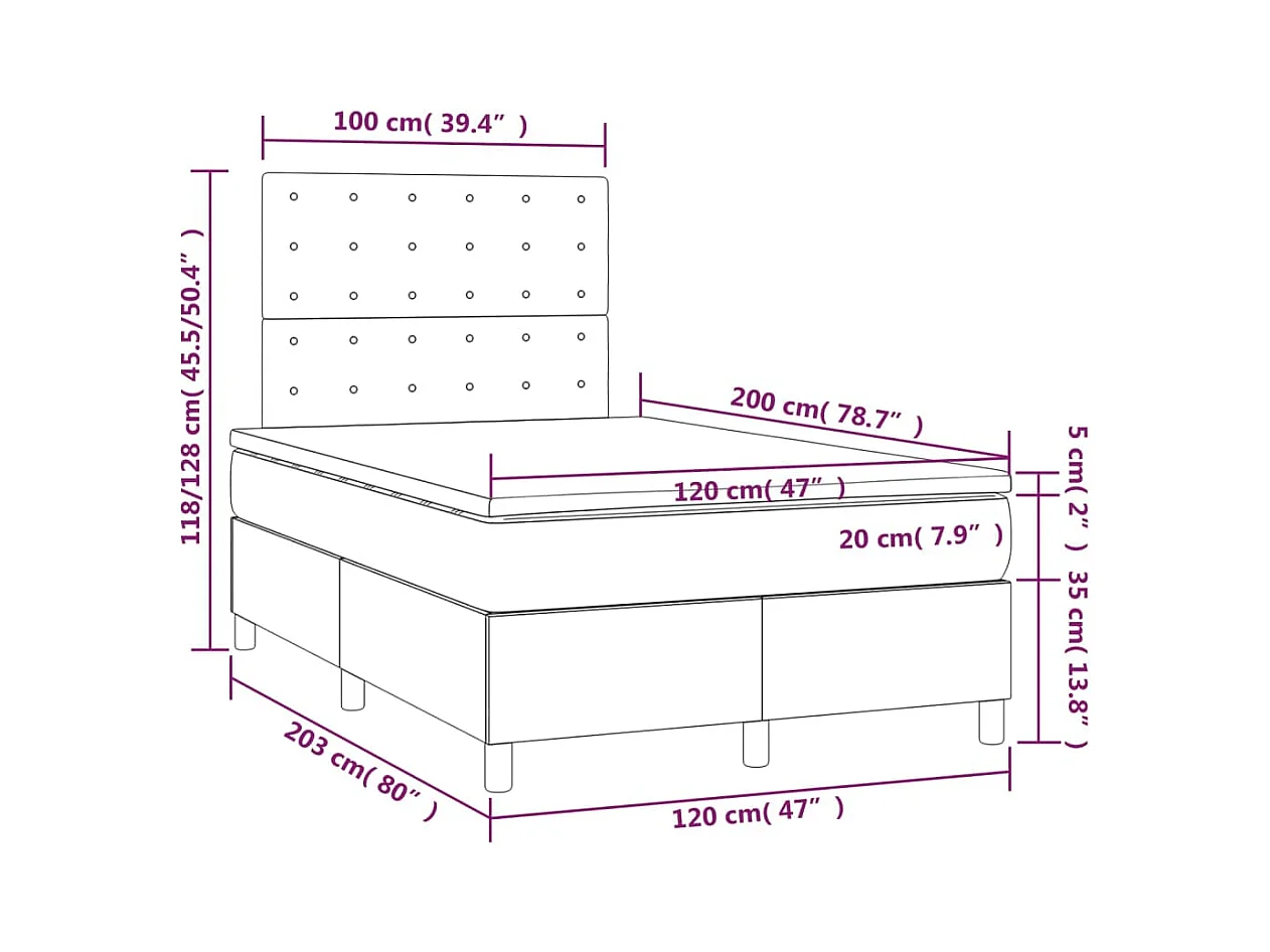 Lit à sommier tapissier avec matelas Rose 120x200 Velours 2
