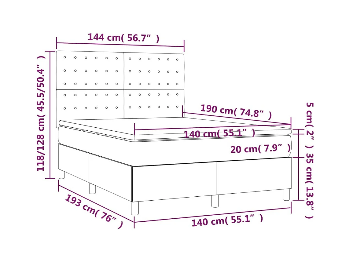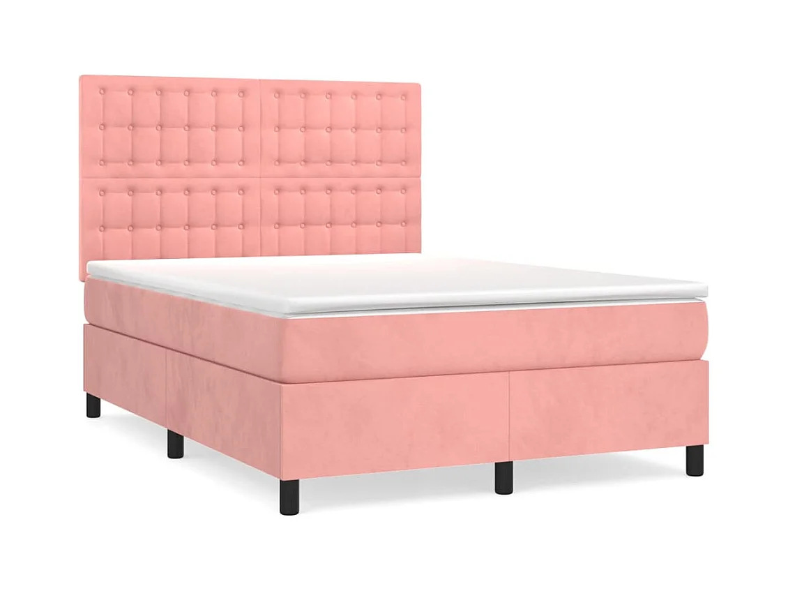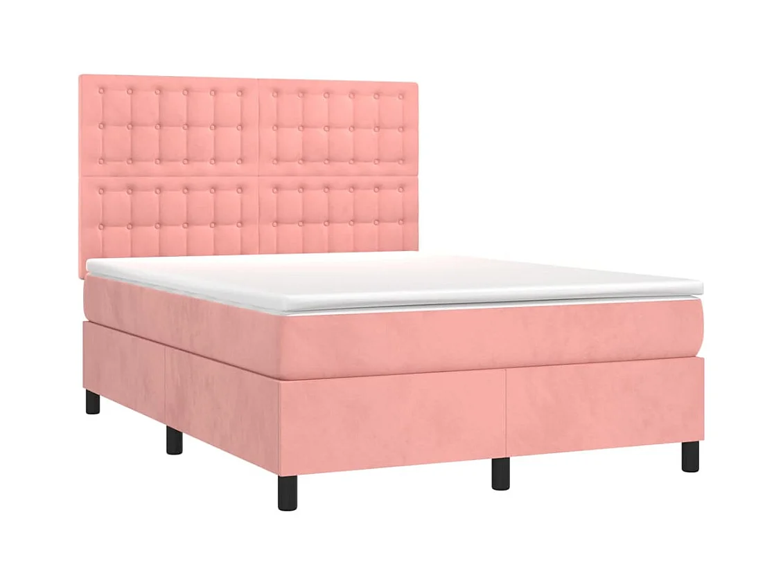 Lit à sommier tapissier avec matelas Rose 140x190 Velours