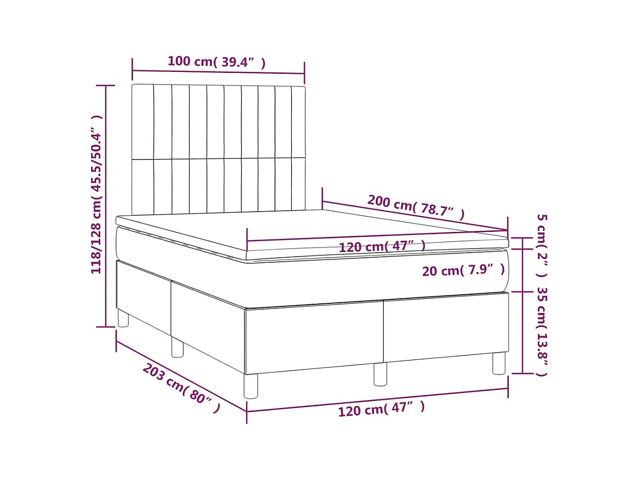 Lit à sommier tapissier avec matelas Taupe 120x200 cm Tissu
