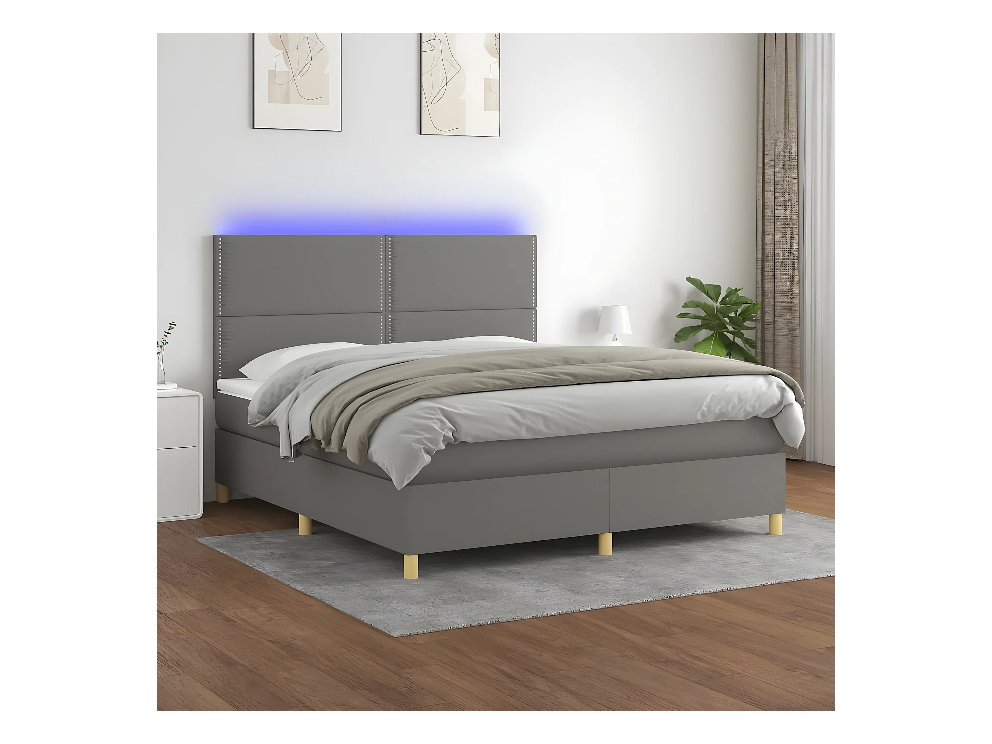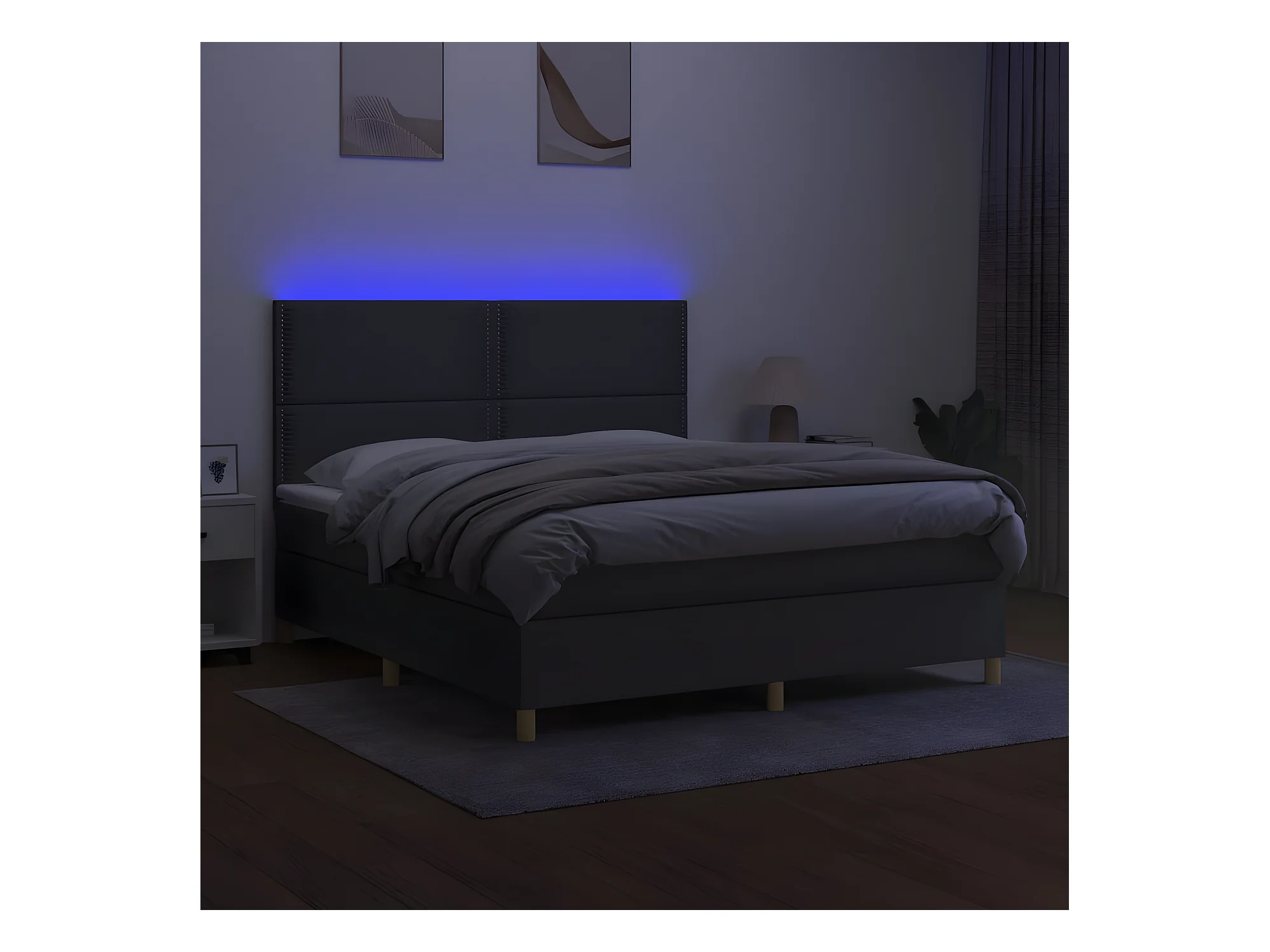 Lit à sommier tapissier et matelas et LED Gris foncé 180x200 Tissu 2