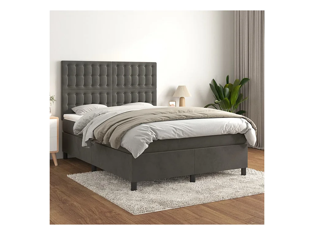 Lit à sommier tapissier et matelas Gris foncé 140x200 Velours