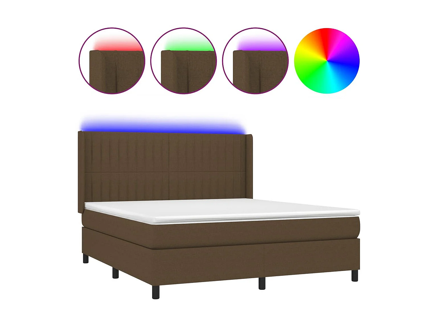 Lit à sommier tapissier matelas et LED Marron foncé 160x200 Tissu