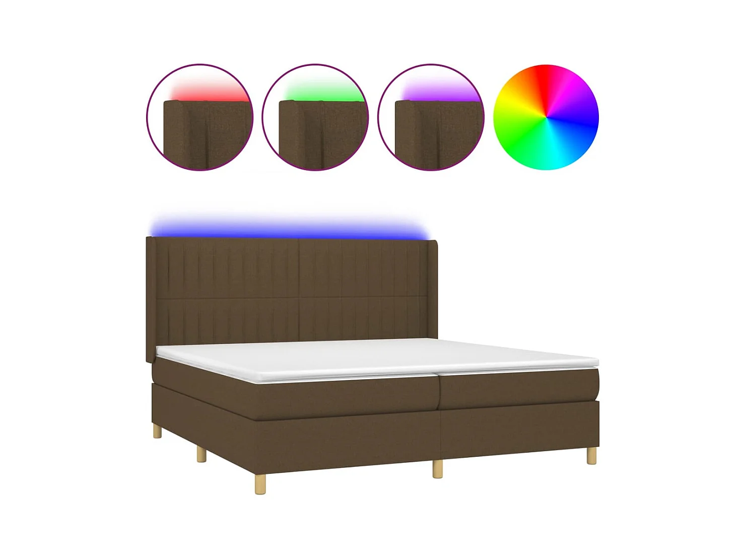 Lit à sommier tapissier matelas et LED Marron foncé 200x200 Tissu