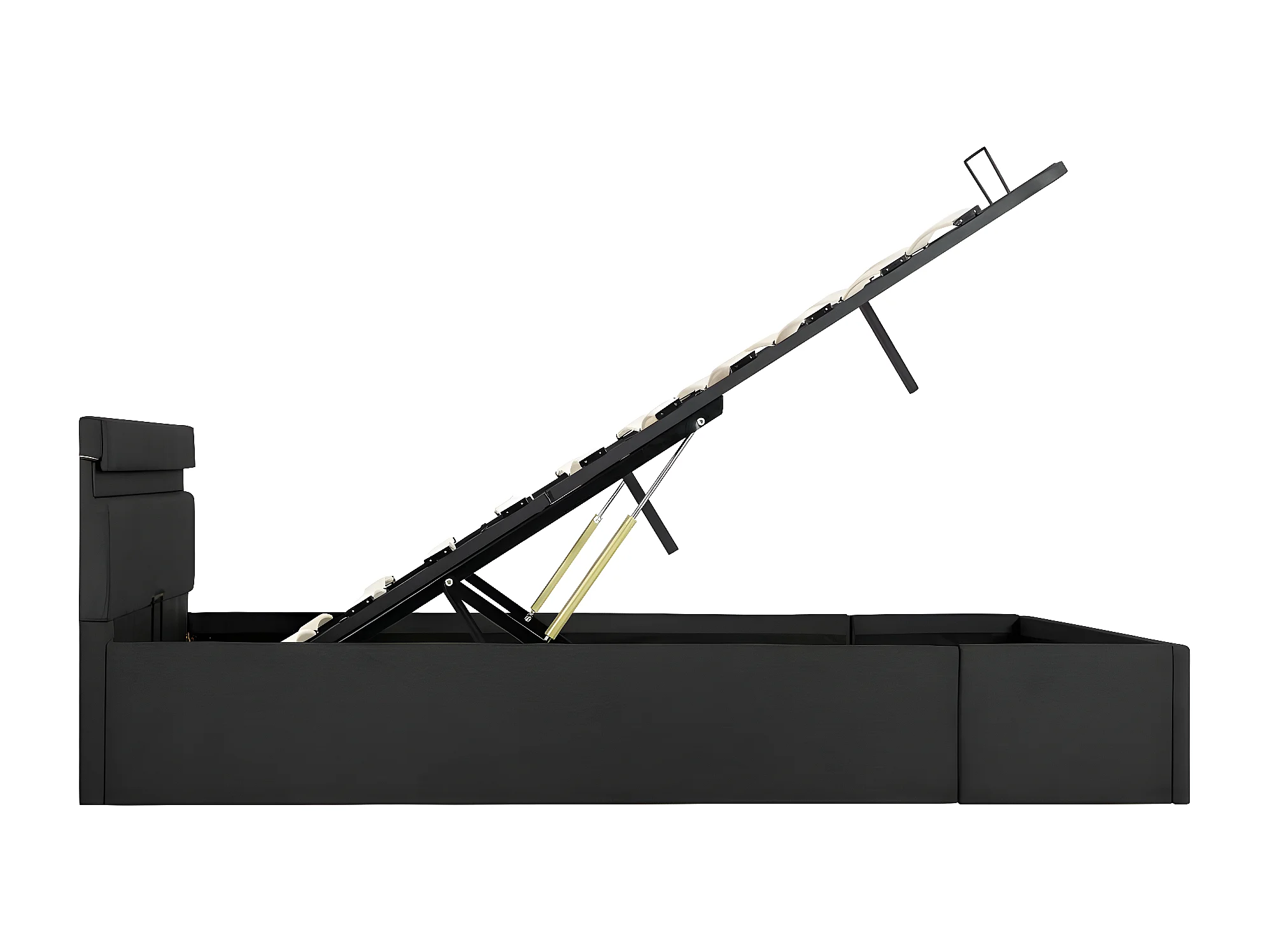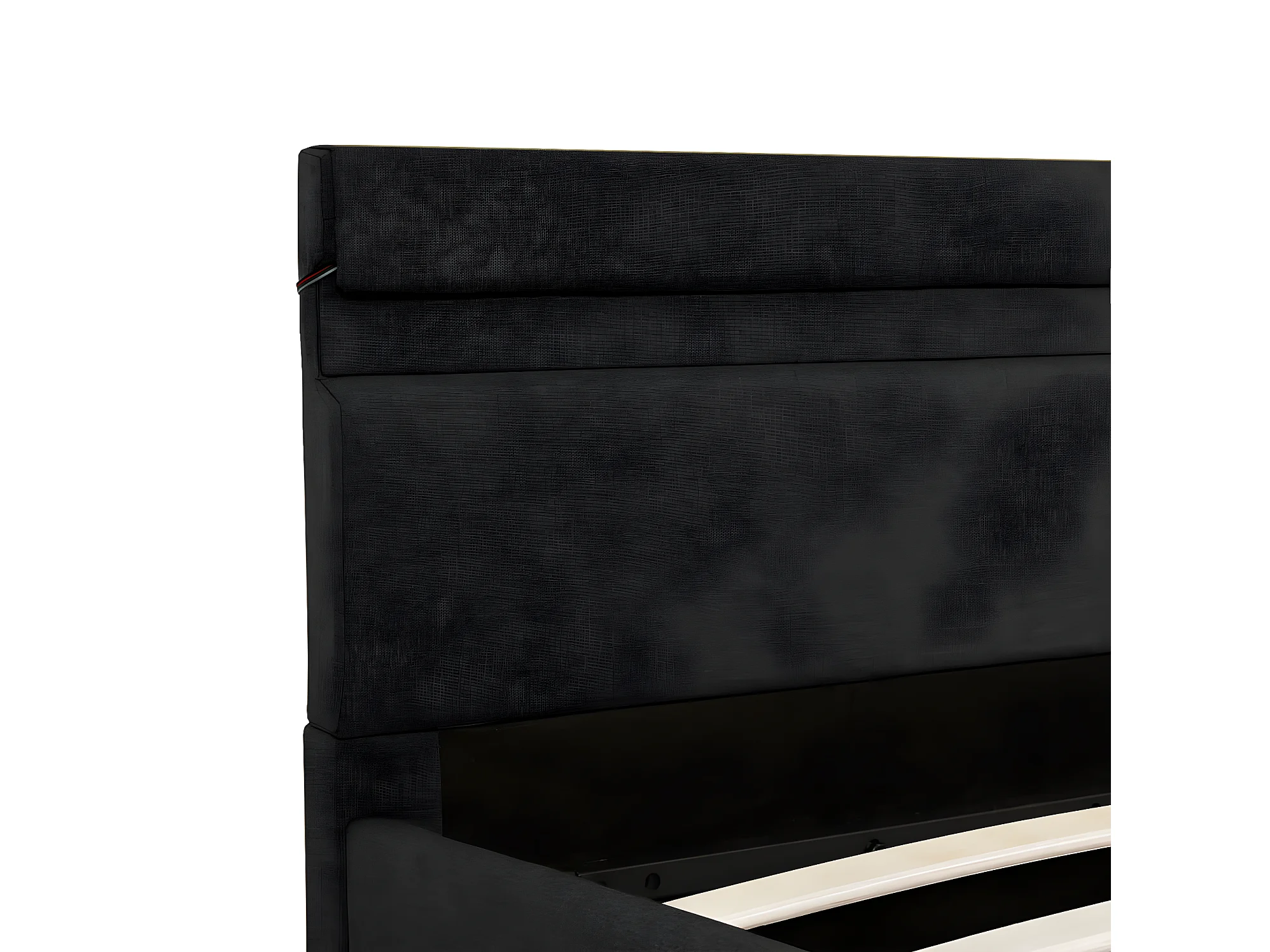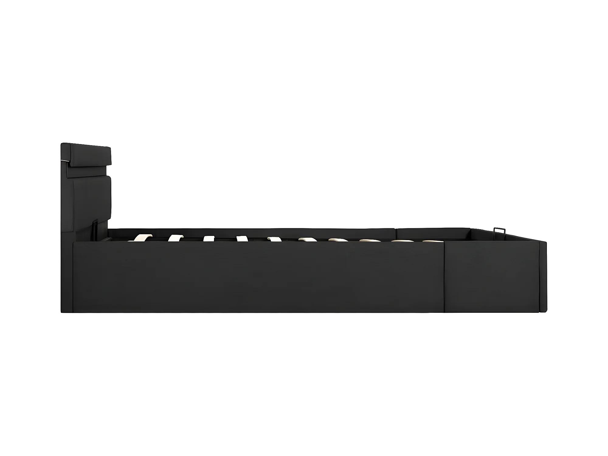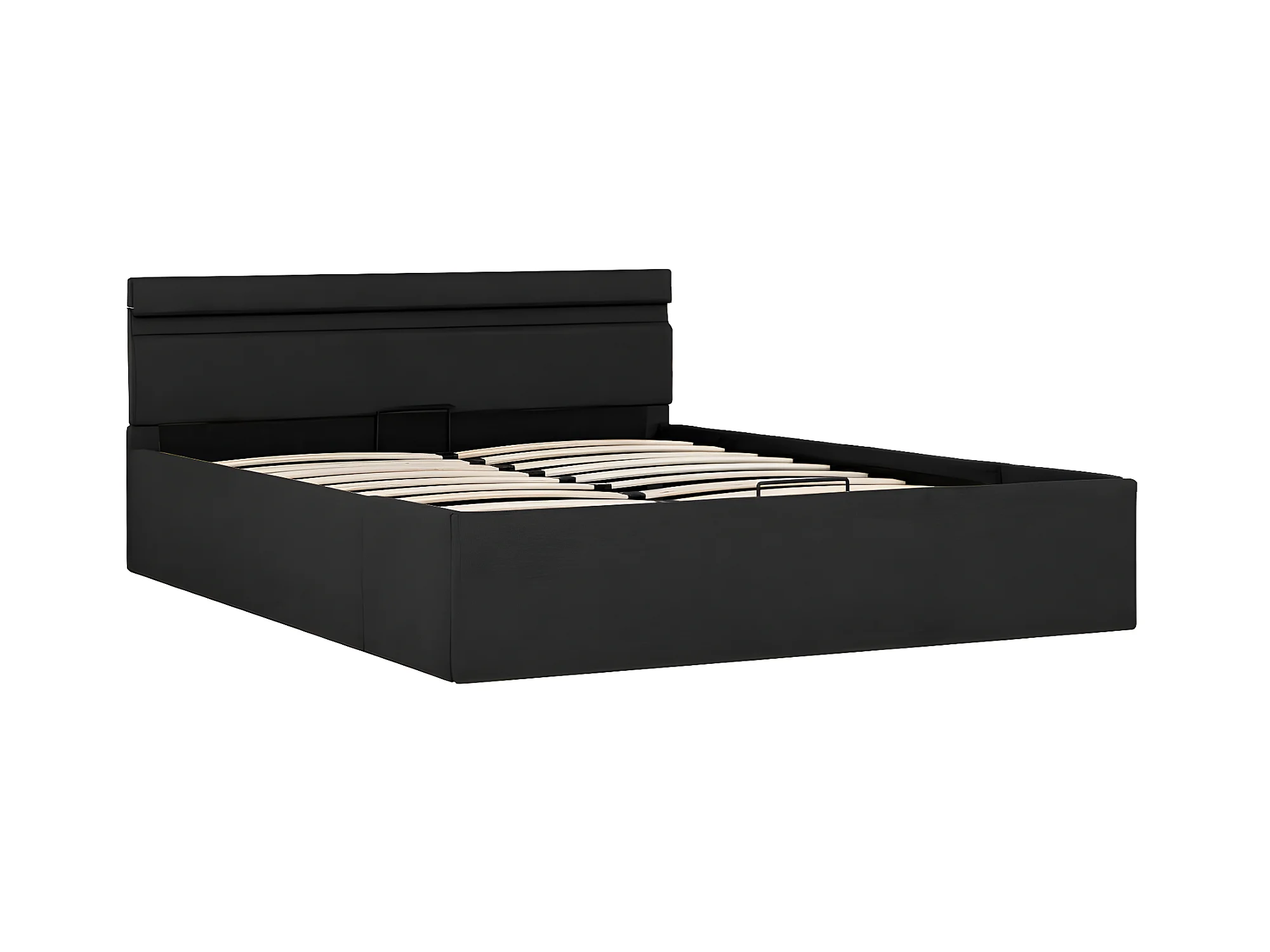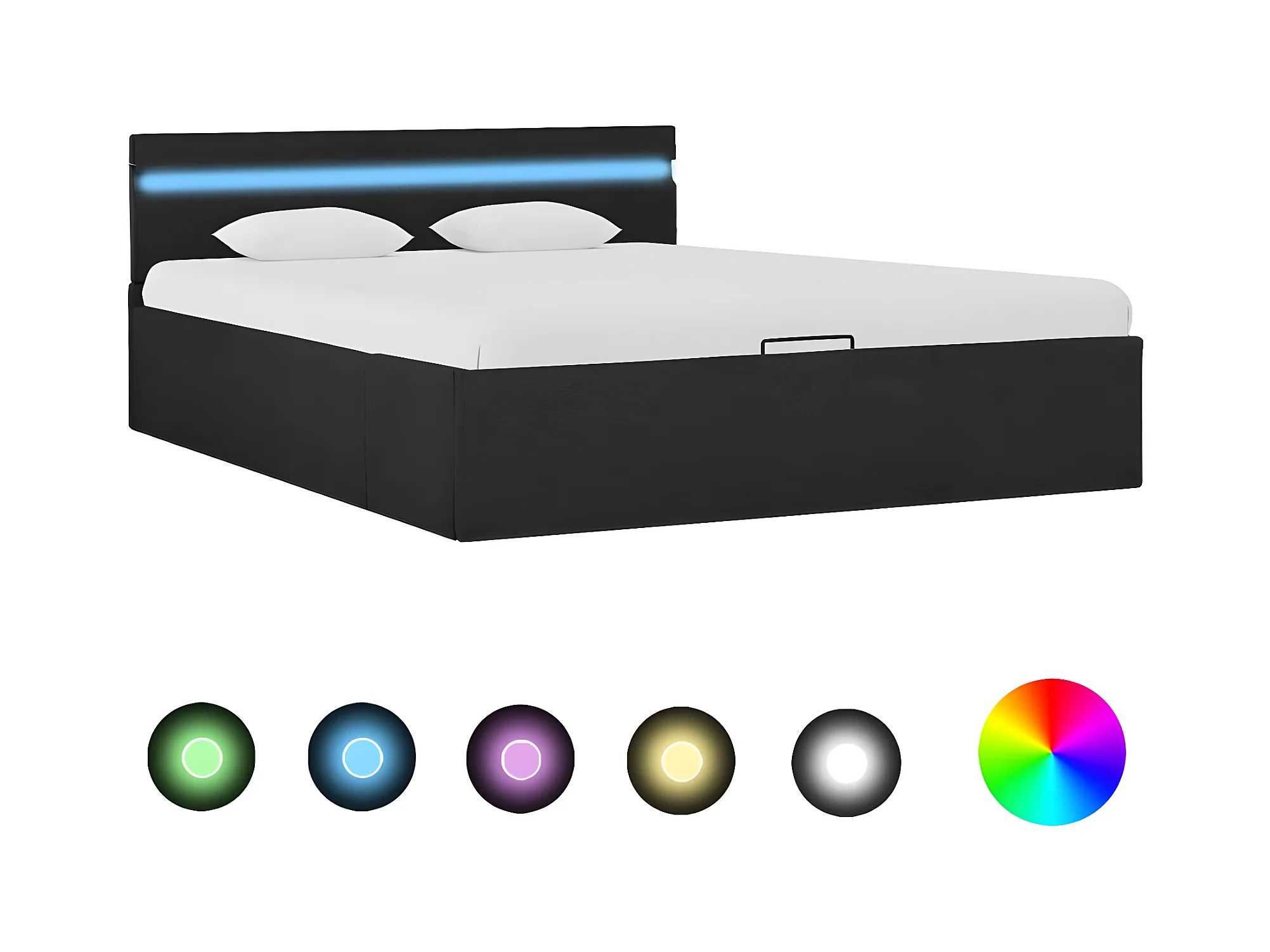Lit à stockage avec LED Gris foncé Tissu 140x200