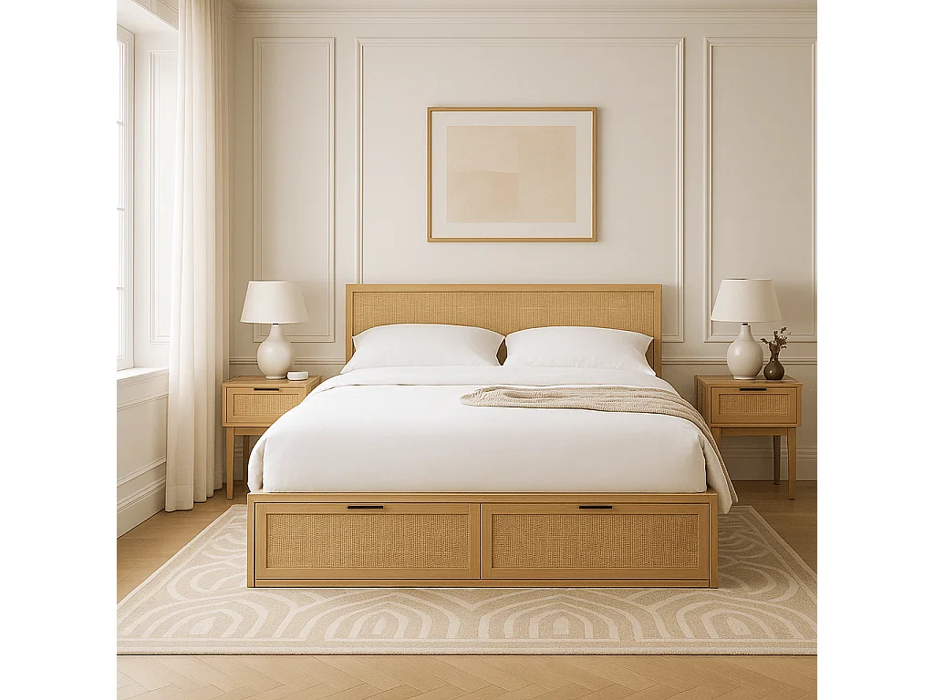 Lit à tiroirs cannage rotin 160x200 sommier inclus ZIRCON