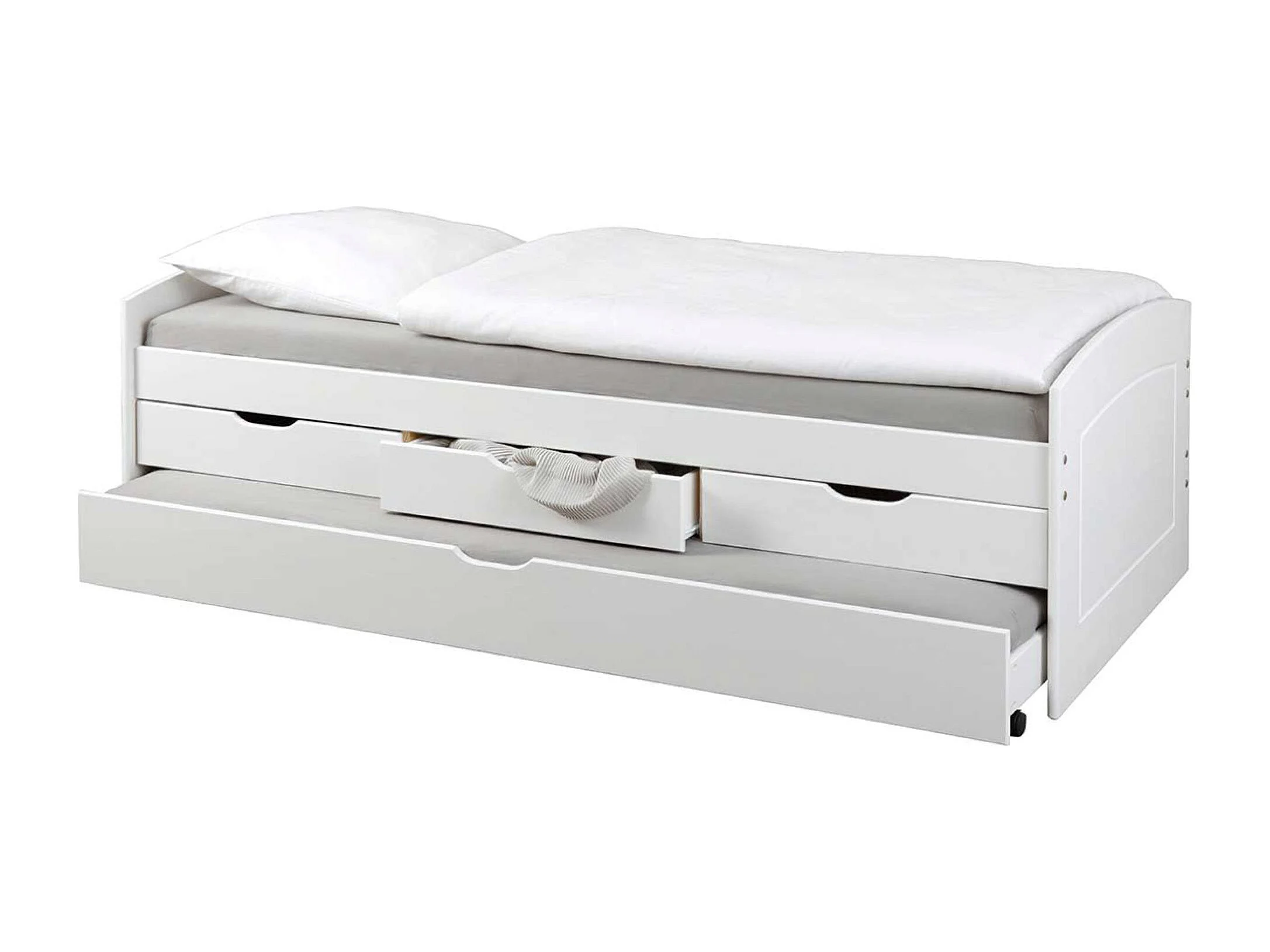 Lit à tiroirs en bois coloris blanc - Dim : 90 x 200 cm