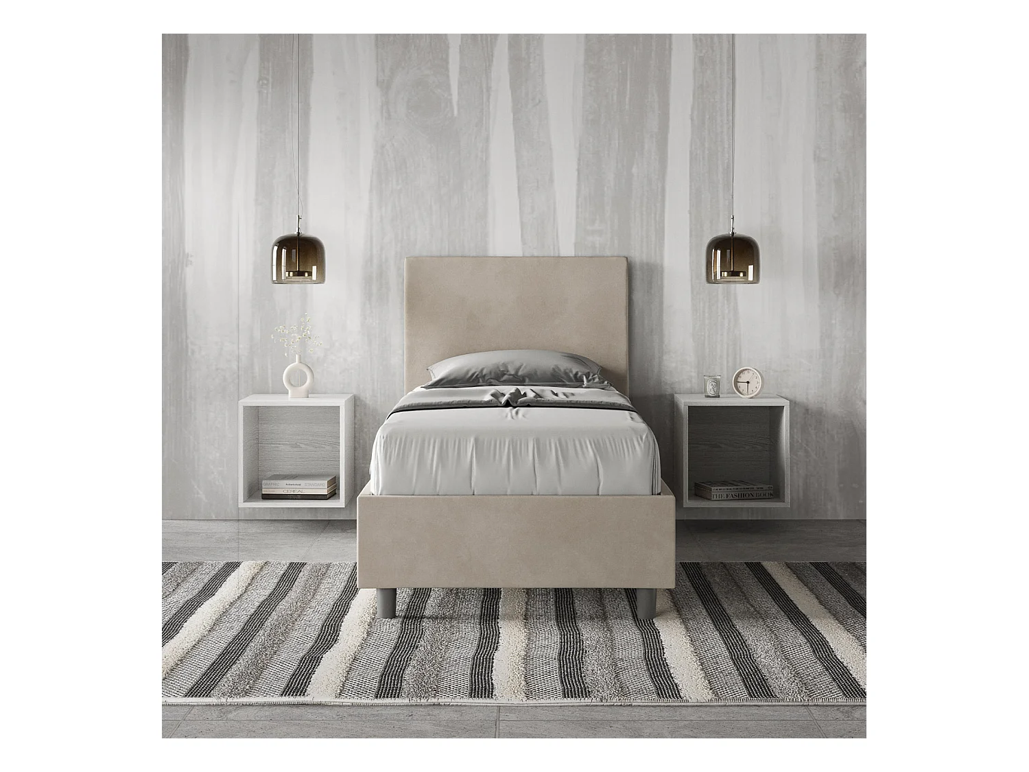 Lit Adèle avec sommier rembourré en microfibre sable 90x200