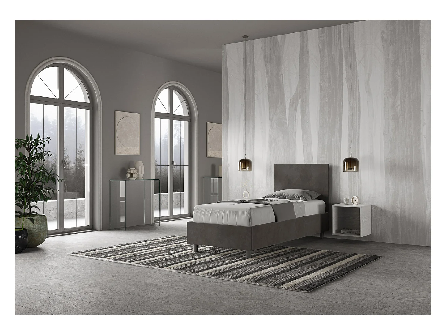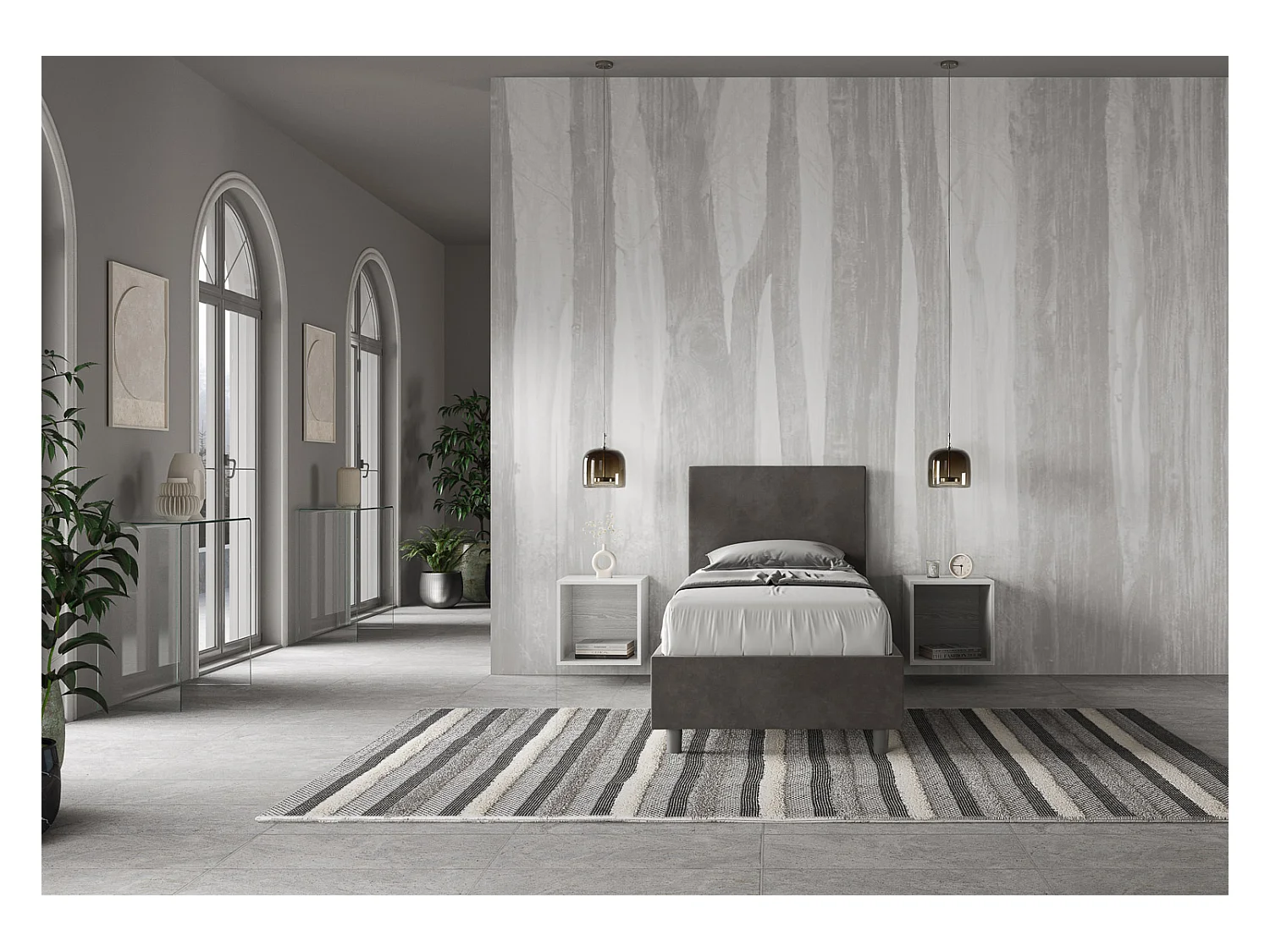 Lit Adele gris microfibre avec sommier capitonné 90x210