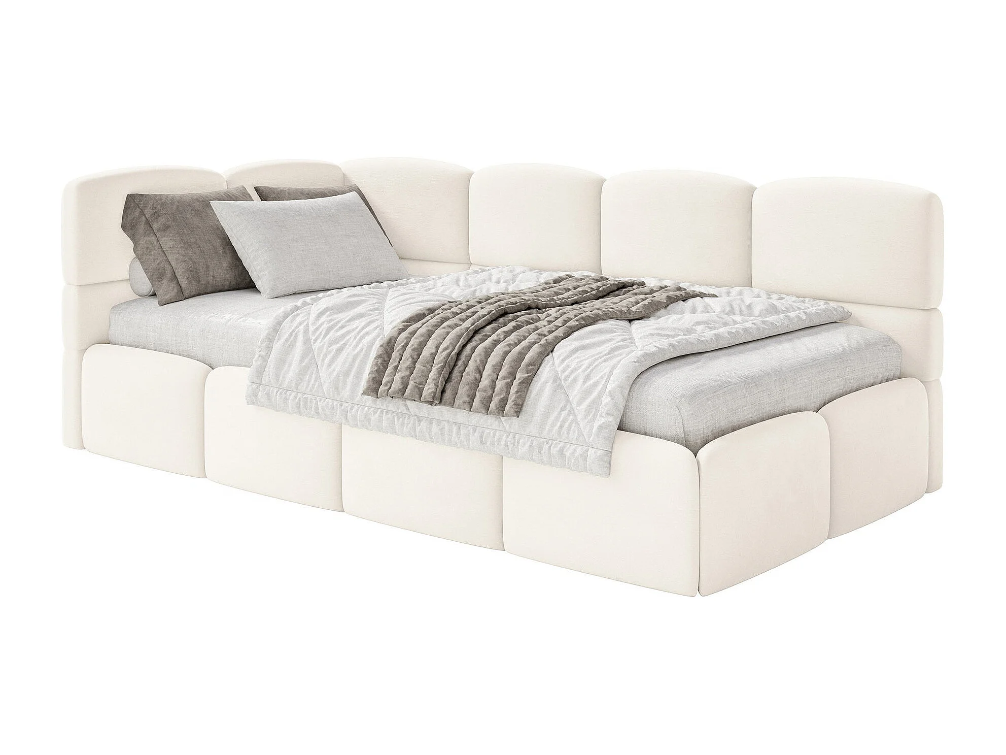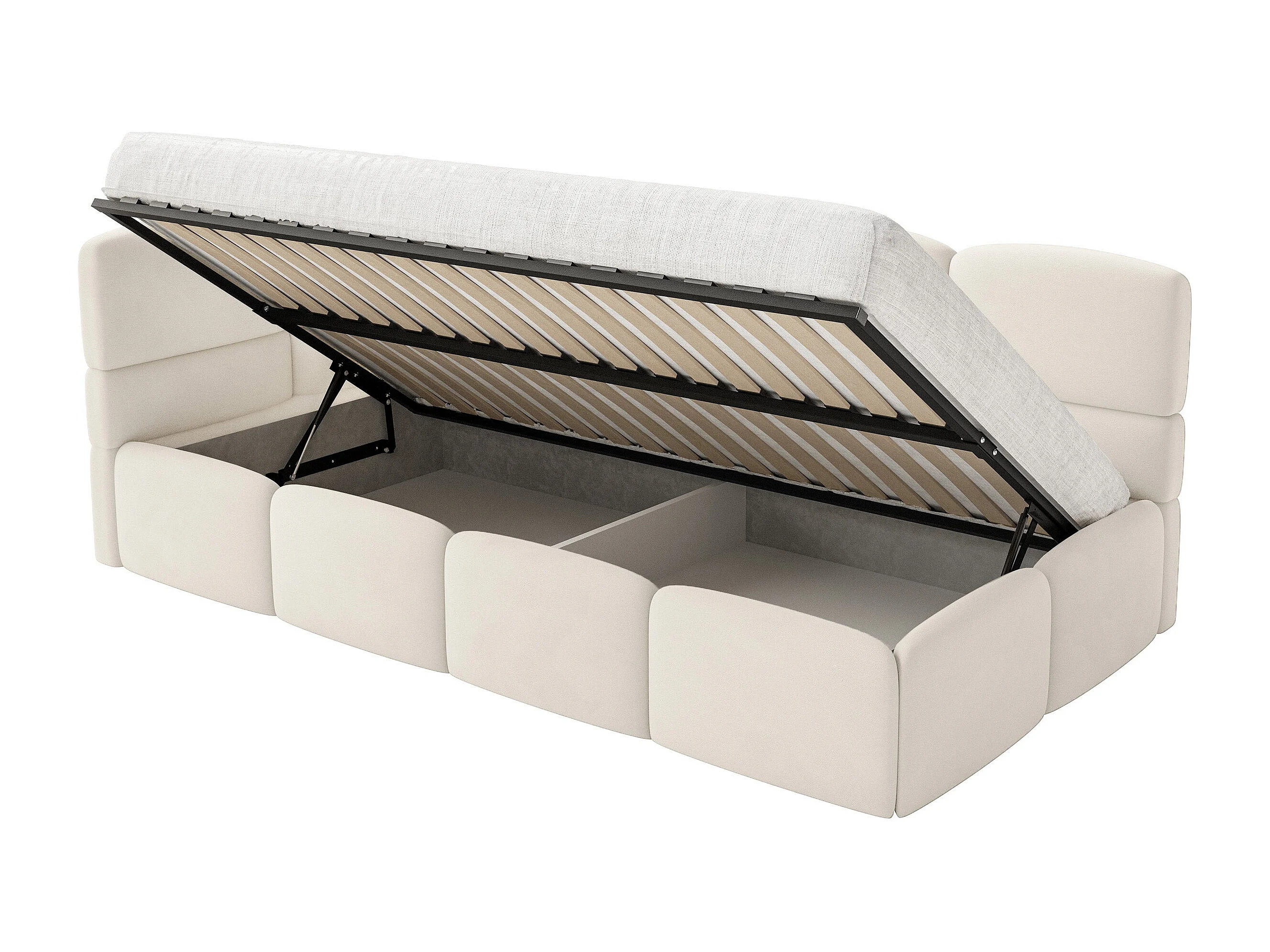 Lit ado 120x200 cm – tête de lit à gauche – matelas & coffre de rangement – velours crème – CLOUDY