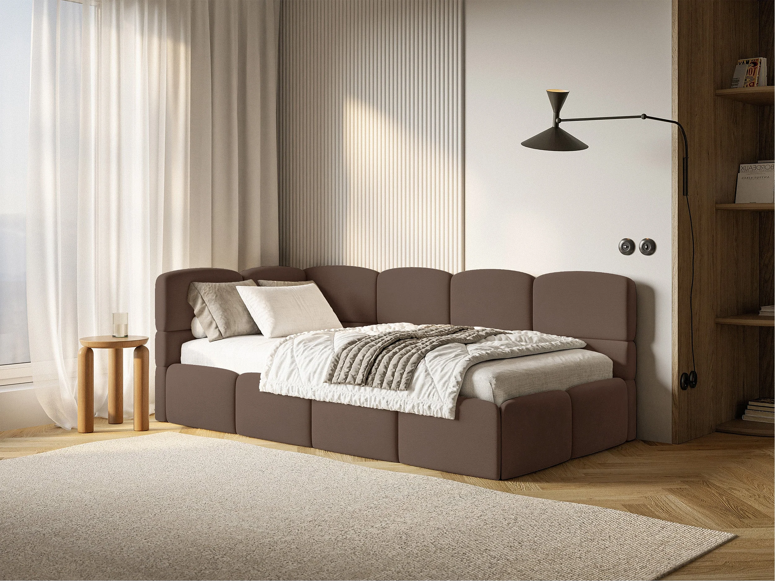 Lit ado 120x200 cm – tête de lit à gauche – matelas & coffre de rangement – velours marron – CLOUDY