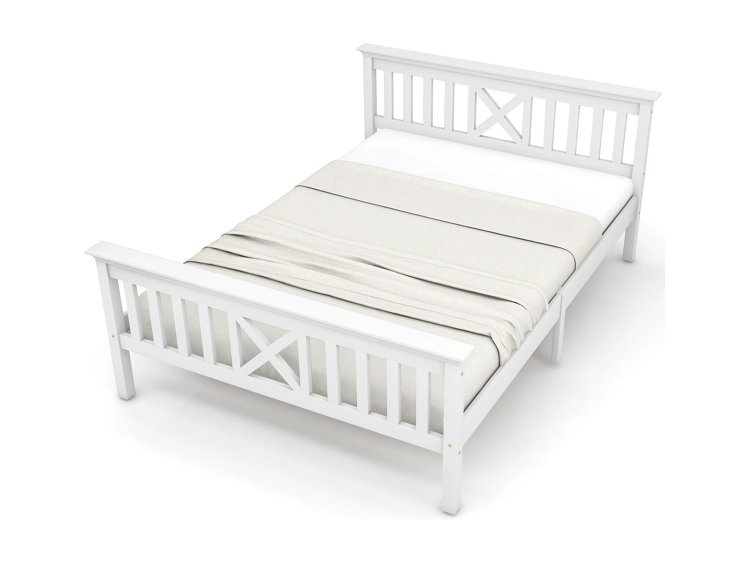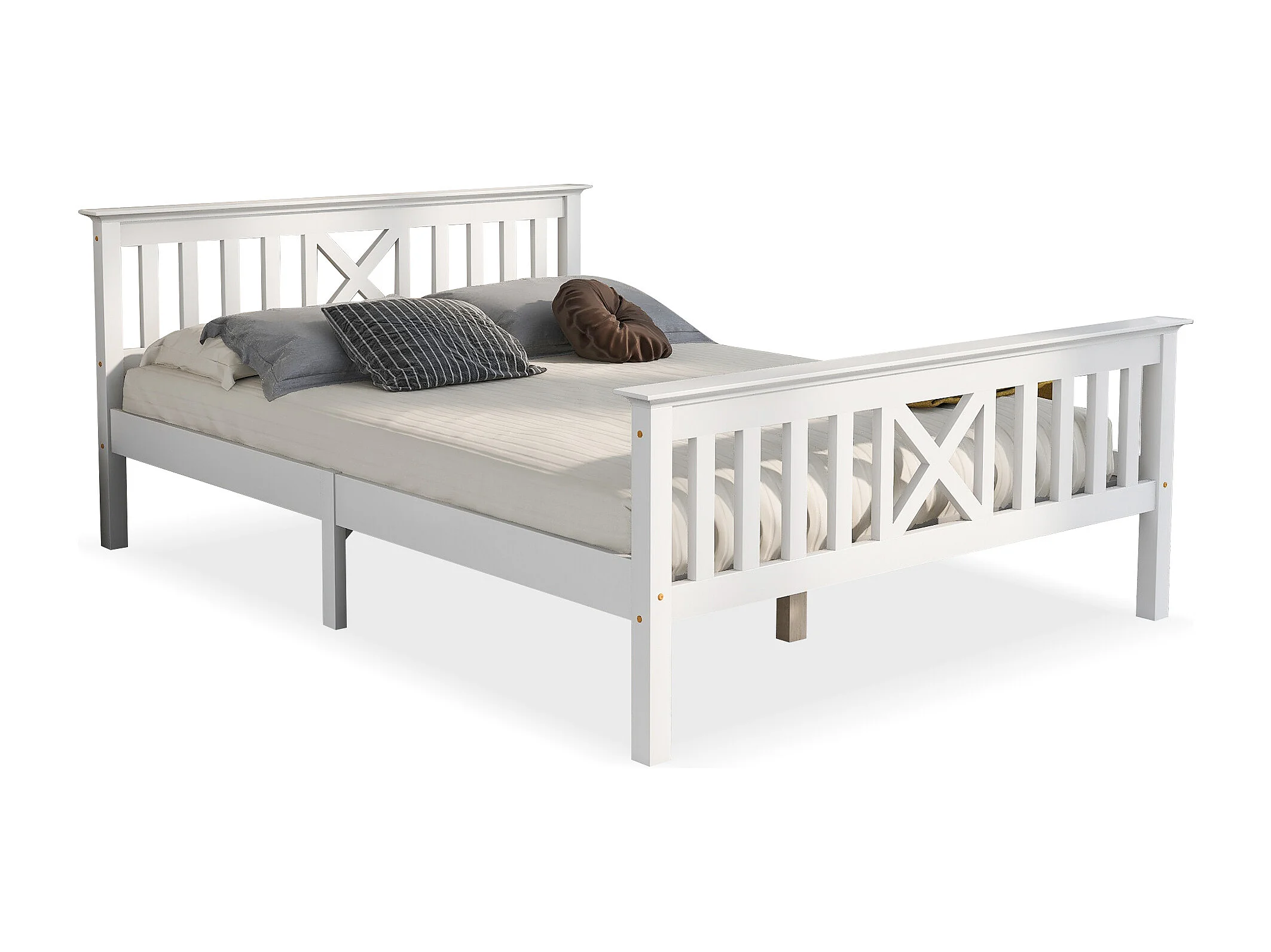 Lit adulte 140 x 200 cm - avec tête de lit et sommier à lattes - bois blanc - matelas non inclus