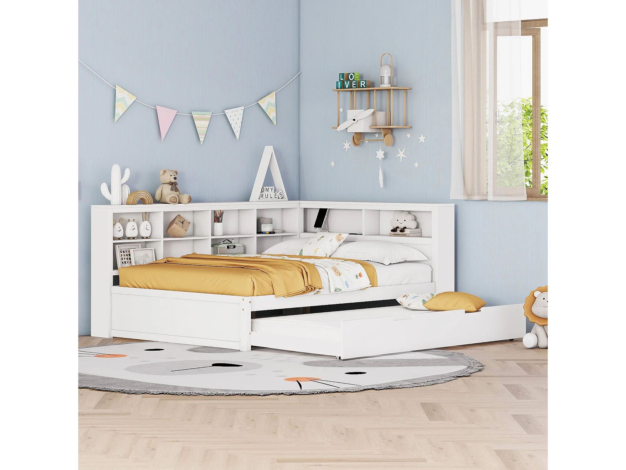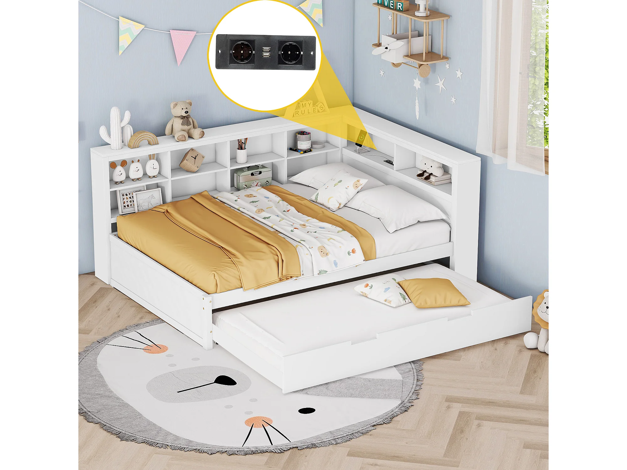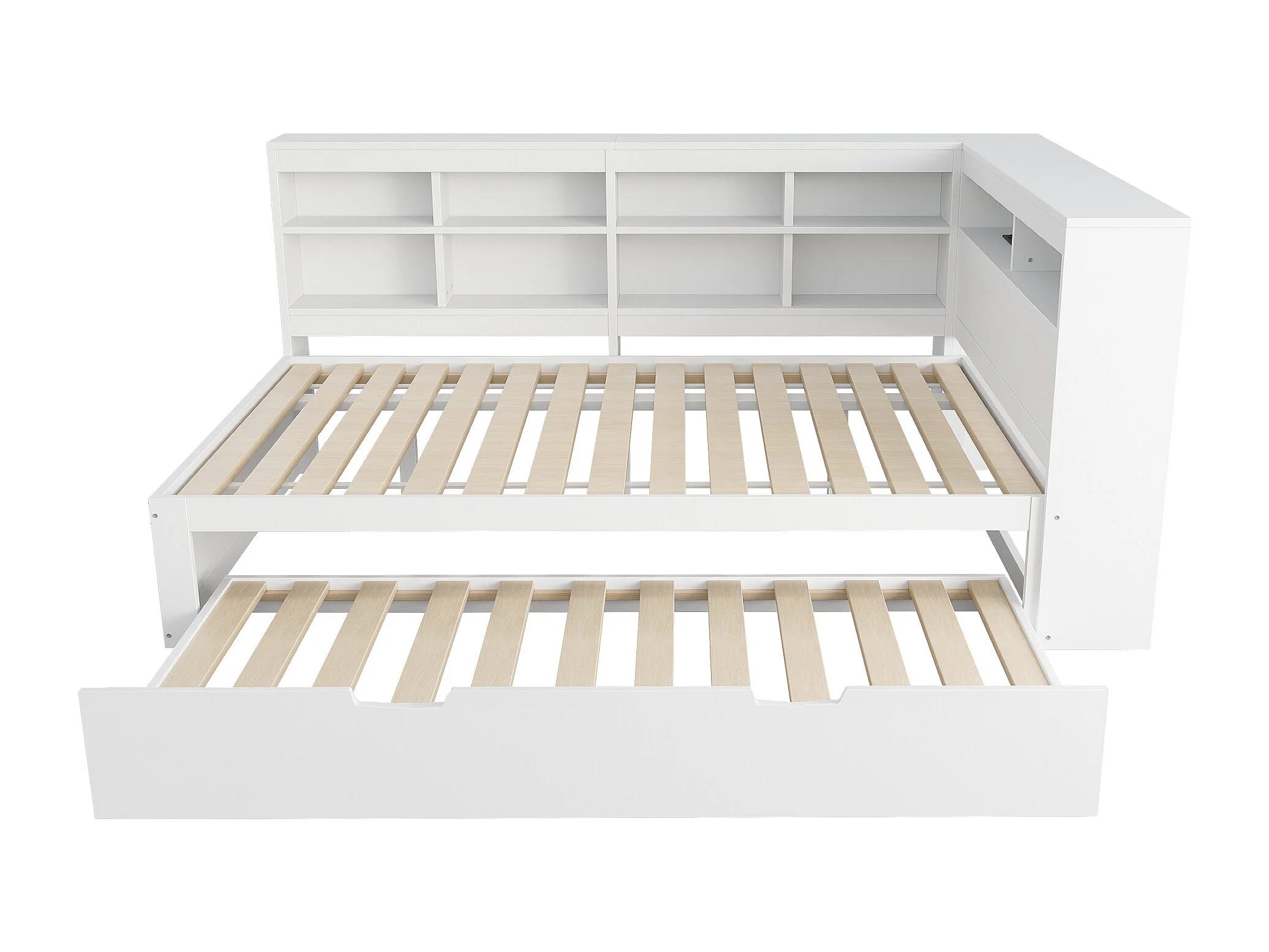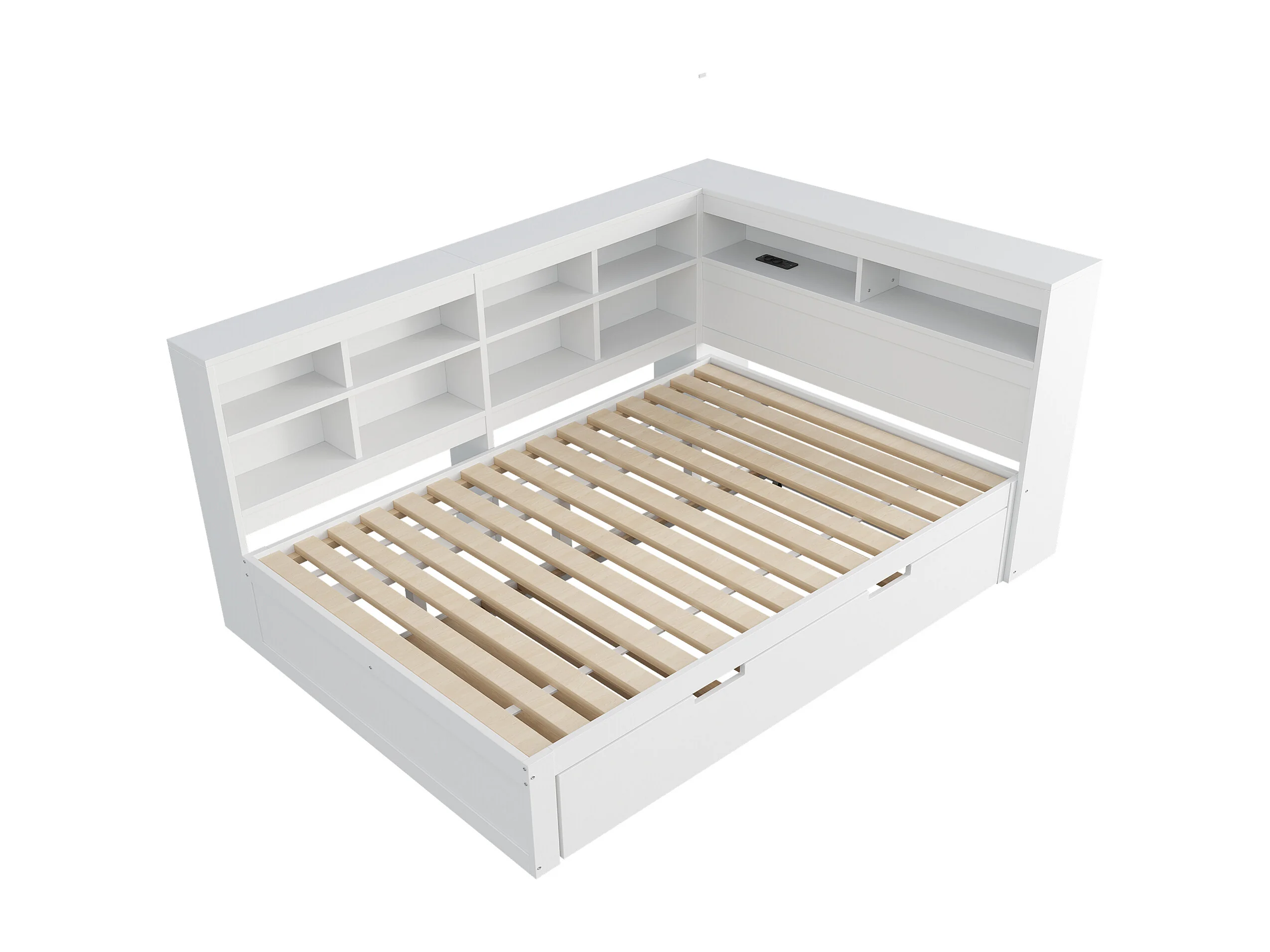 Lit adulte 140 x 200 cm - avec USB et rangement ouvert - blanc - sans mateLas