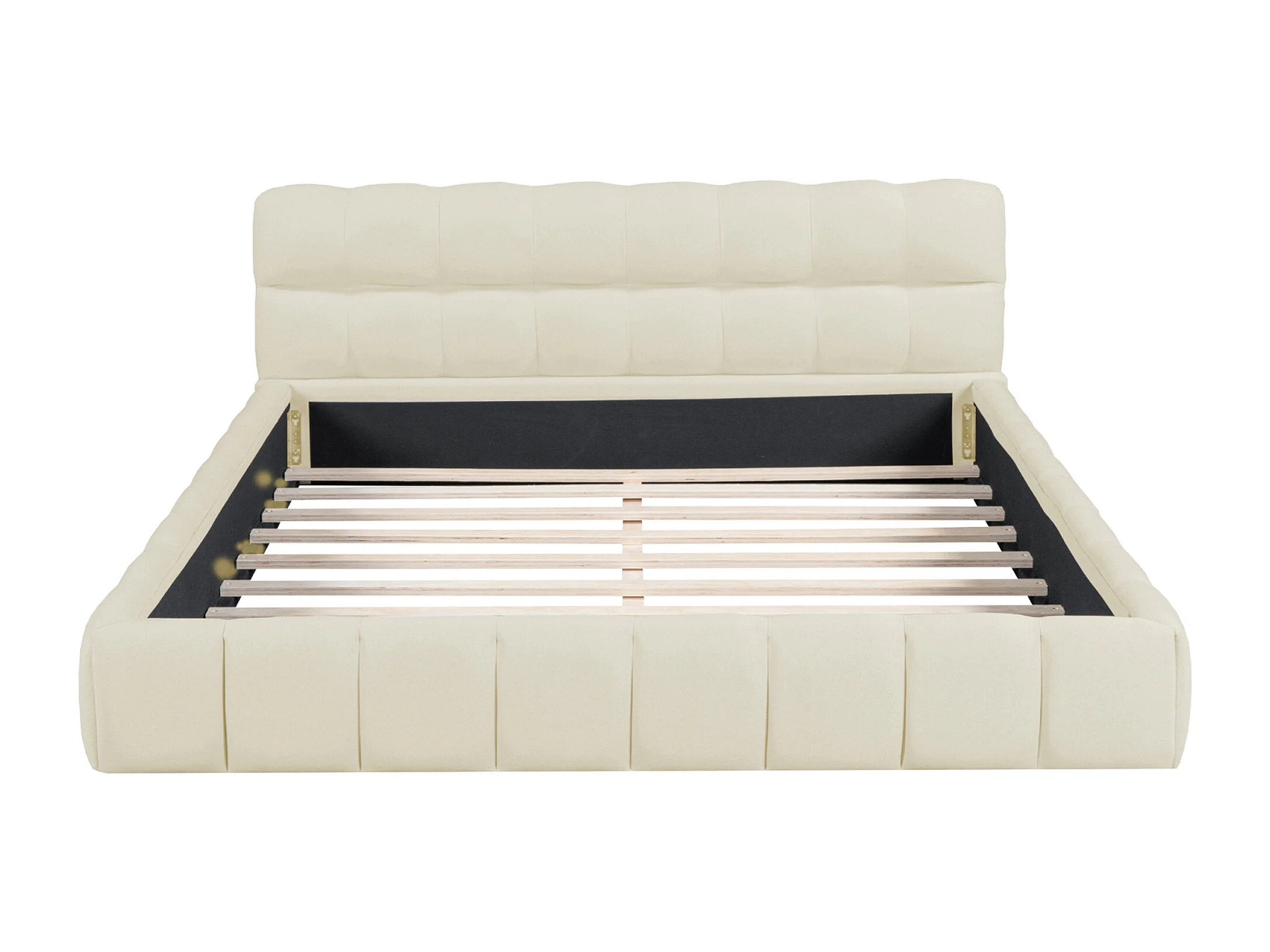 Lit adulte 140x190 cm avec sommier à lattes - NEXU - Style crémeux - lit capitonné en tissu lin 140x190 cm - cadre de lit 140x190 cm - beige