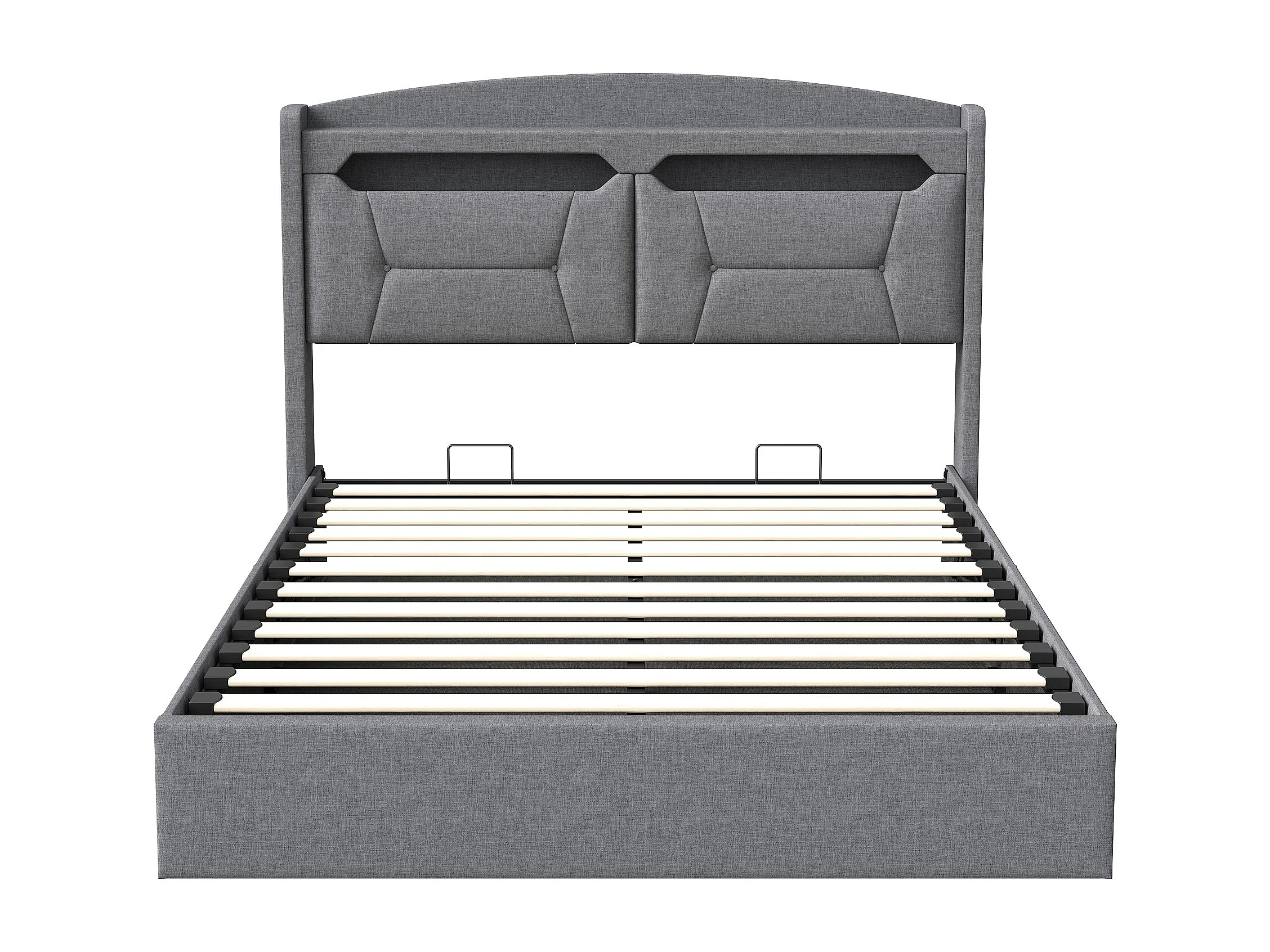 lit adulte 140x190 cm coffre rangement, lit double140x190 cm avec sommier à lattes soldes, LED et USB, cadre de lit 140x190 tissu en lin, gris