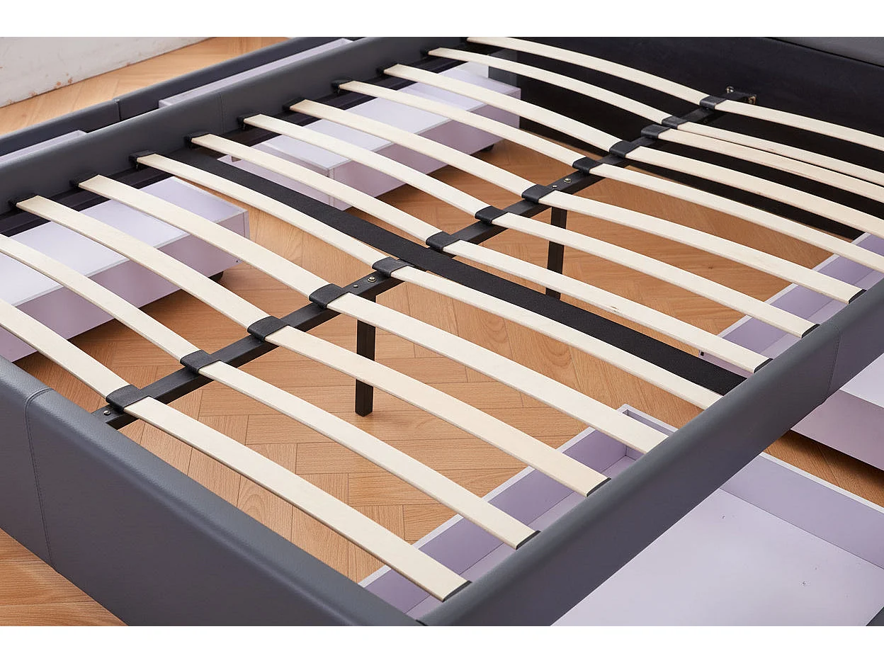 Lit adulte 2 places 140x190 cm gris avec tiroirs LED sommier inclus