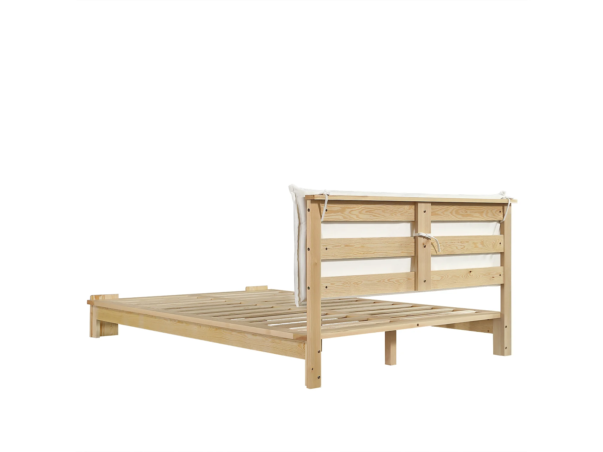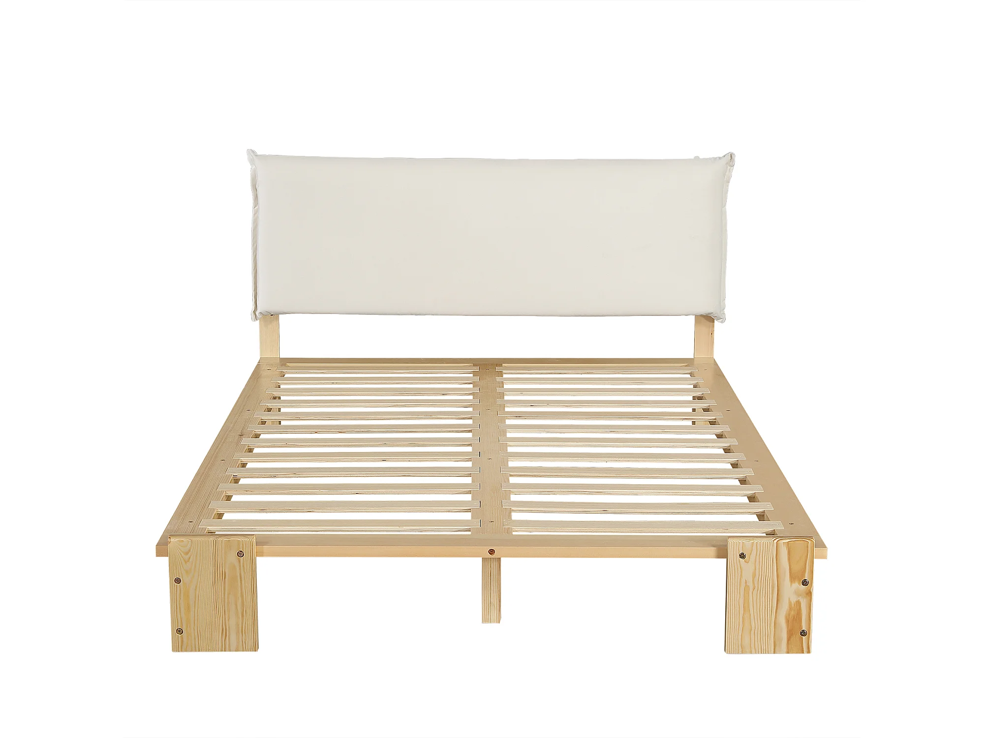 Lit adulte 140x200 cm en bois - Tête de lit avec fermeture velcro - Couleur bois clair