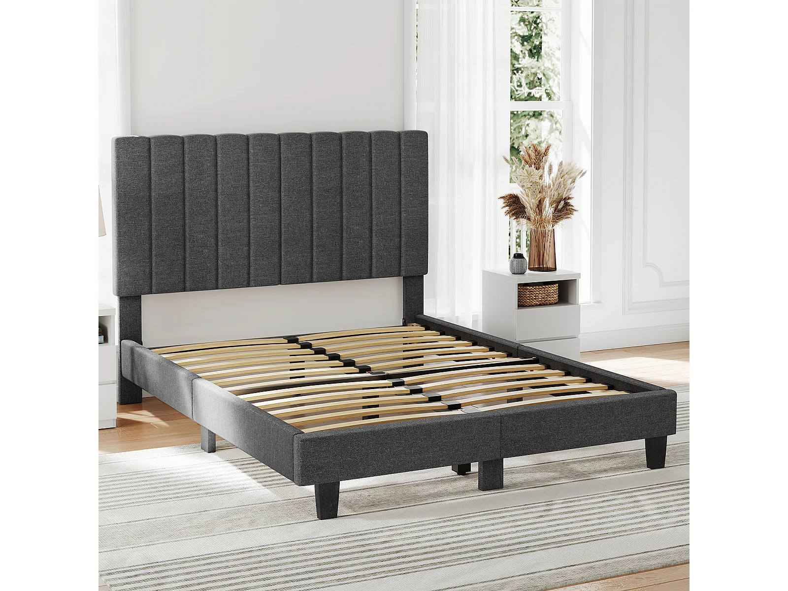 Lit adulte 140x200 cm inre - lit capitonné avec tête de lit en tissu - sommier à lattes - lit double pour 2 personnes - gris foncé