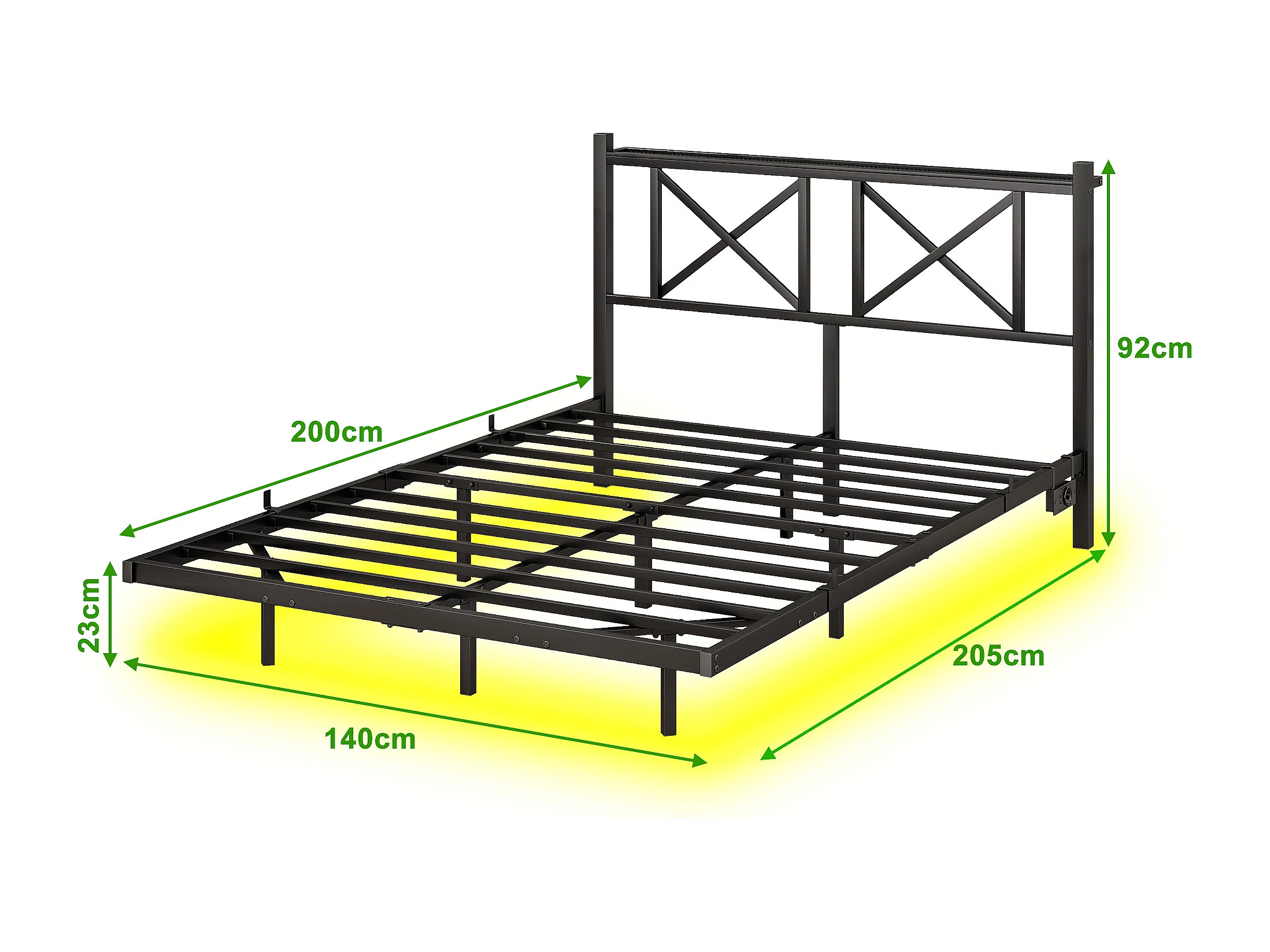 Lit adulte 140x200cm avec LED et station de recharge - Lit flottant en métal - Noir