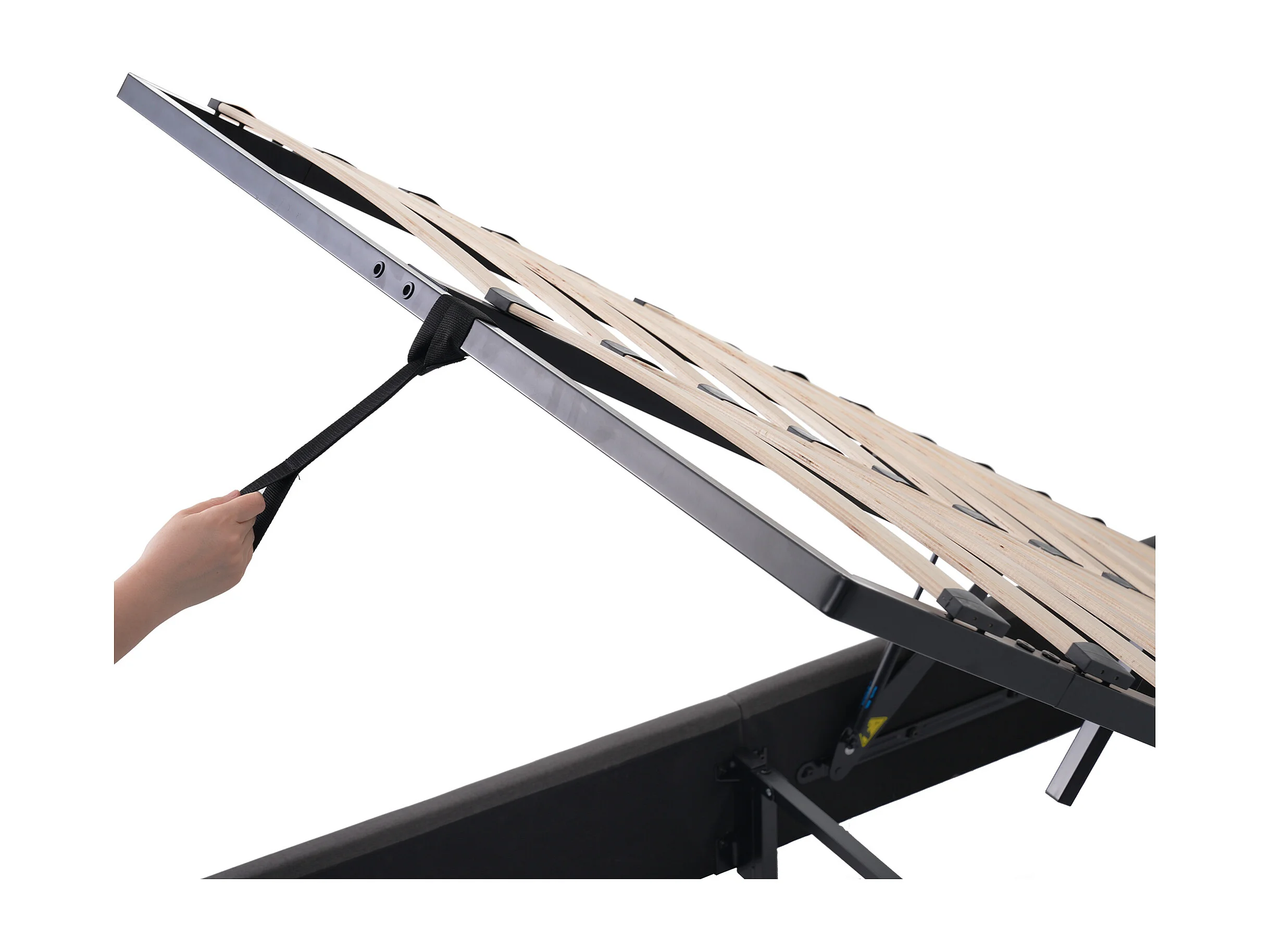 Lit adulte 140x200cm - avec tête de lit avec rangement, USB, LED, sommier à lattes - en lin - gris - sans matelas