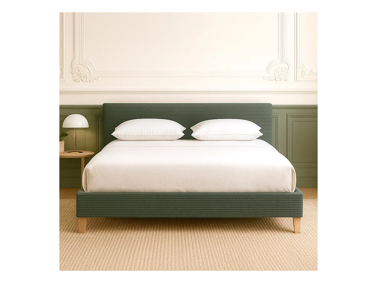 Lit adulte 180x200 cm avec tête de lit capitonnée en velours côtelé vert kaki - Milo