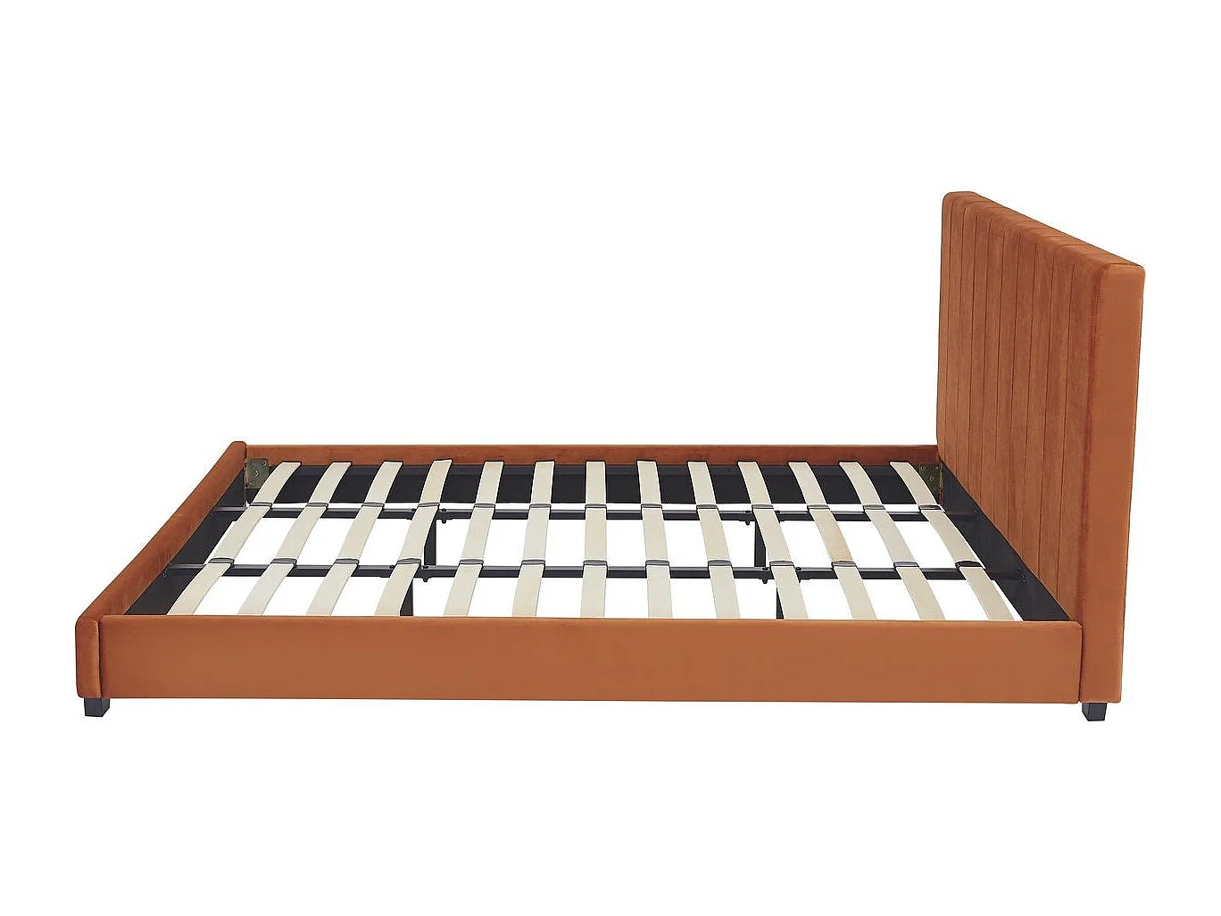 Lit adulte 180x200 cm avec tête de lit capitonnée en velours terracotta - William