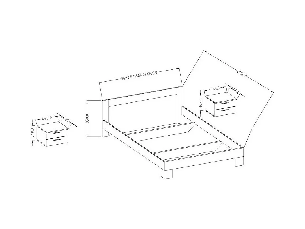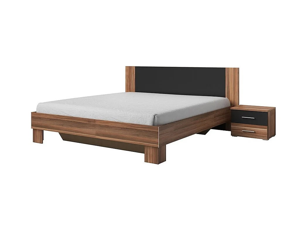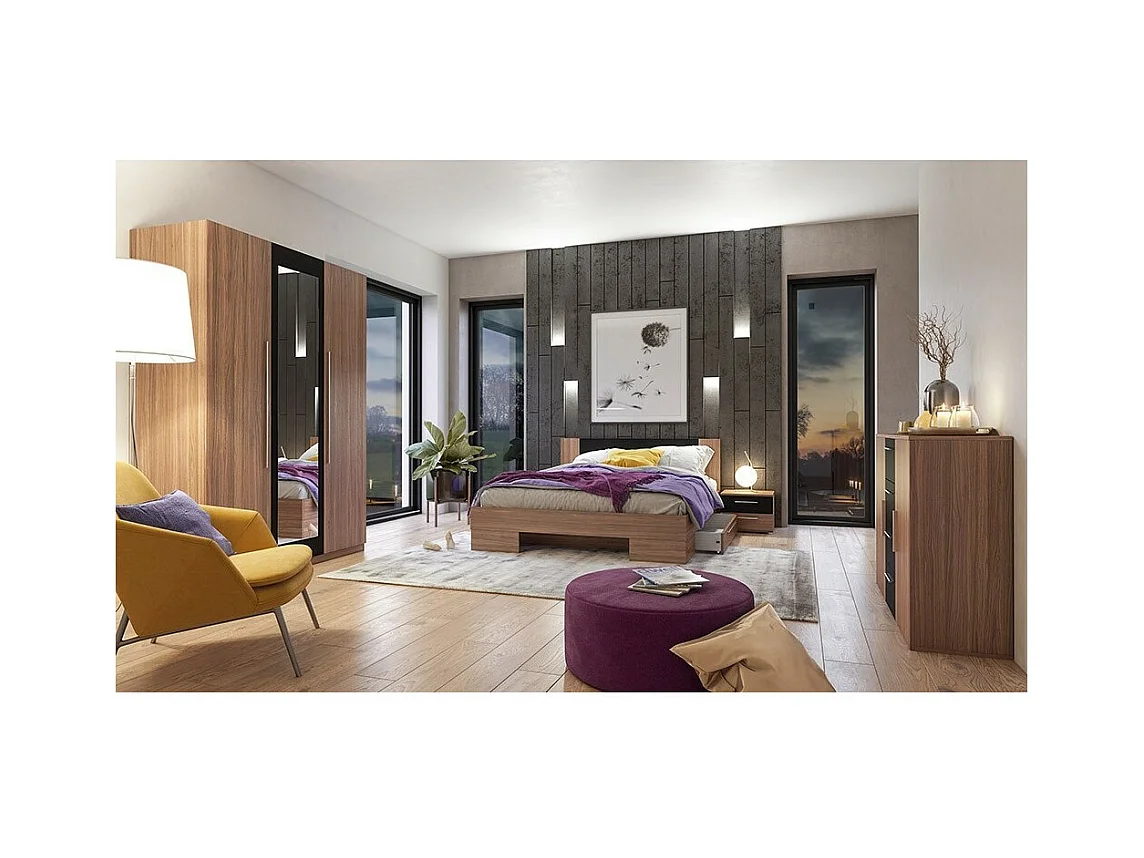 Lit adulte 180x200 collection IRINA. Chevets intégrés. Coloris red wallnut et noir