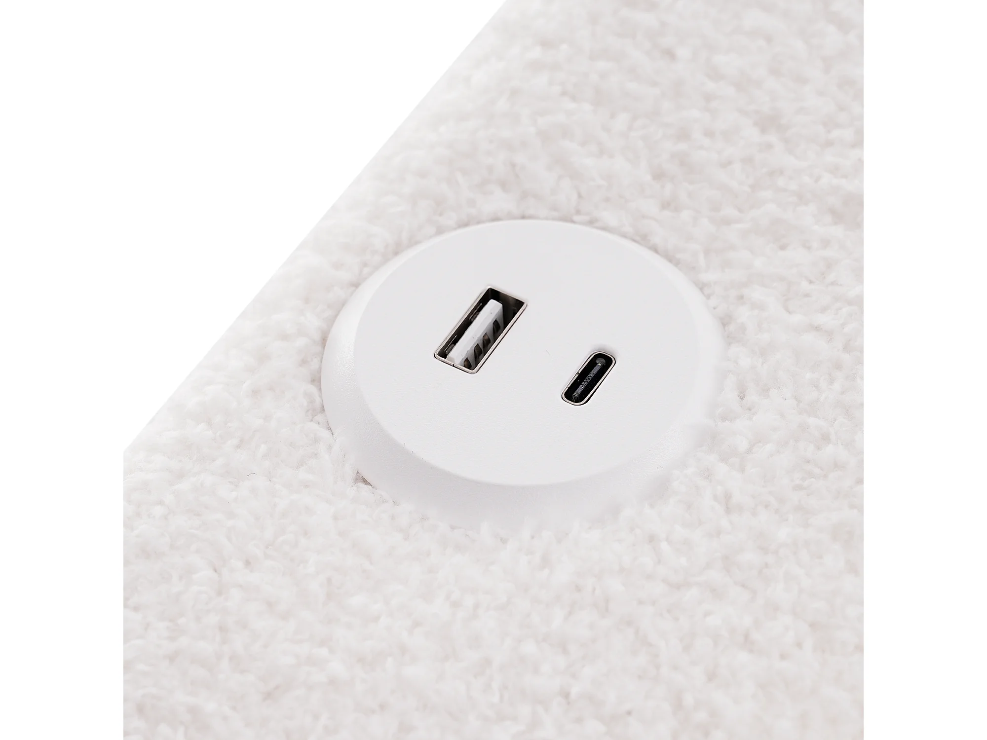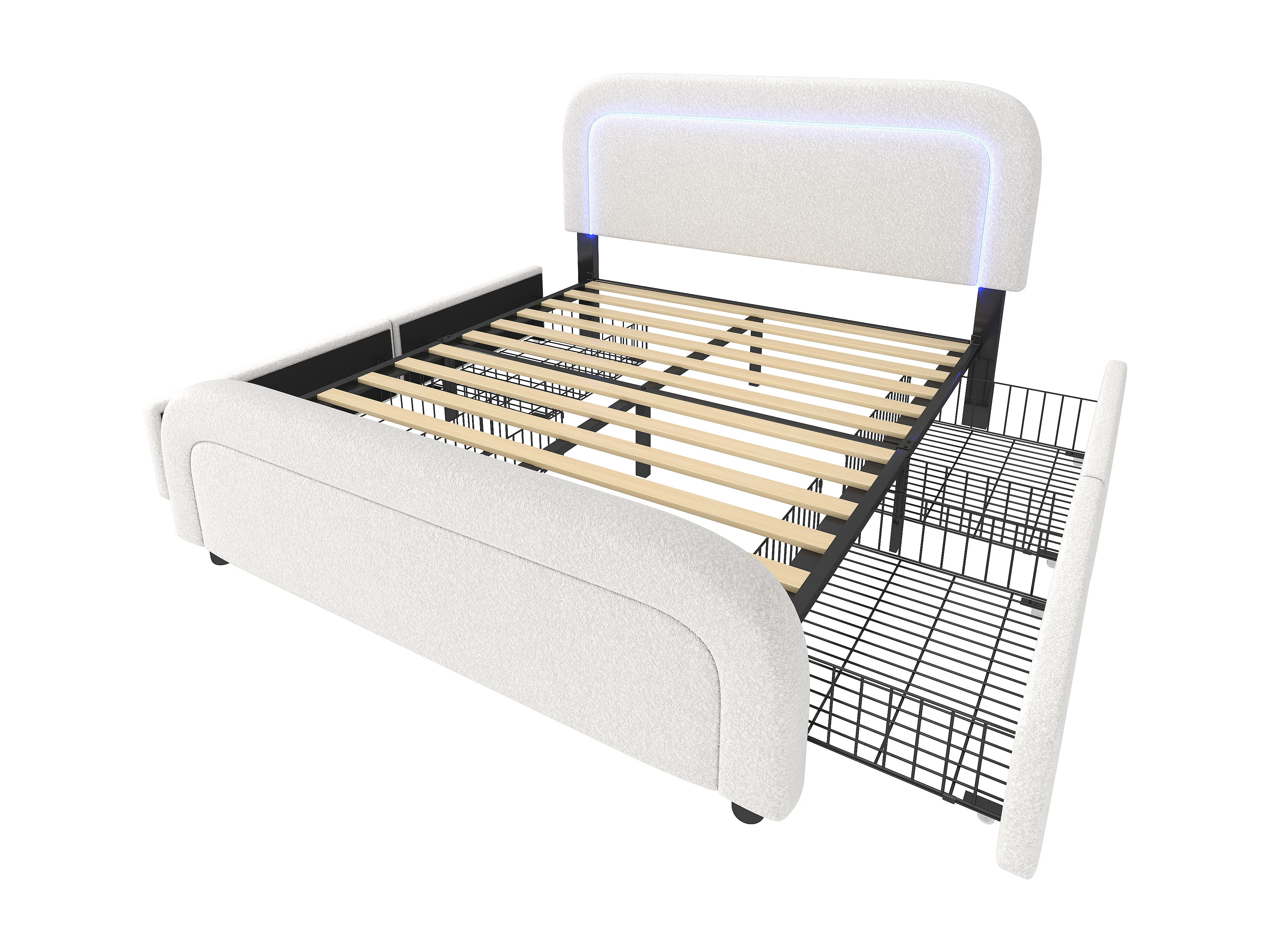 Lit adulte 160x200cm avec sommier et 2 tiroirs - tête de lit réglable avec USB et LED - sherpa - blanc (sans matelas)