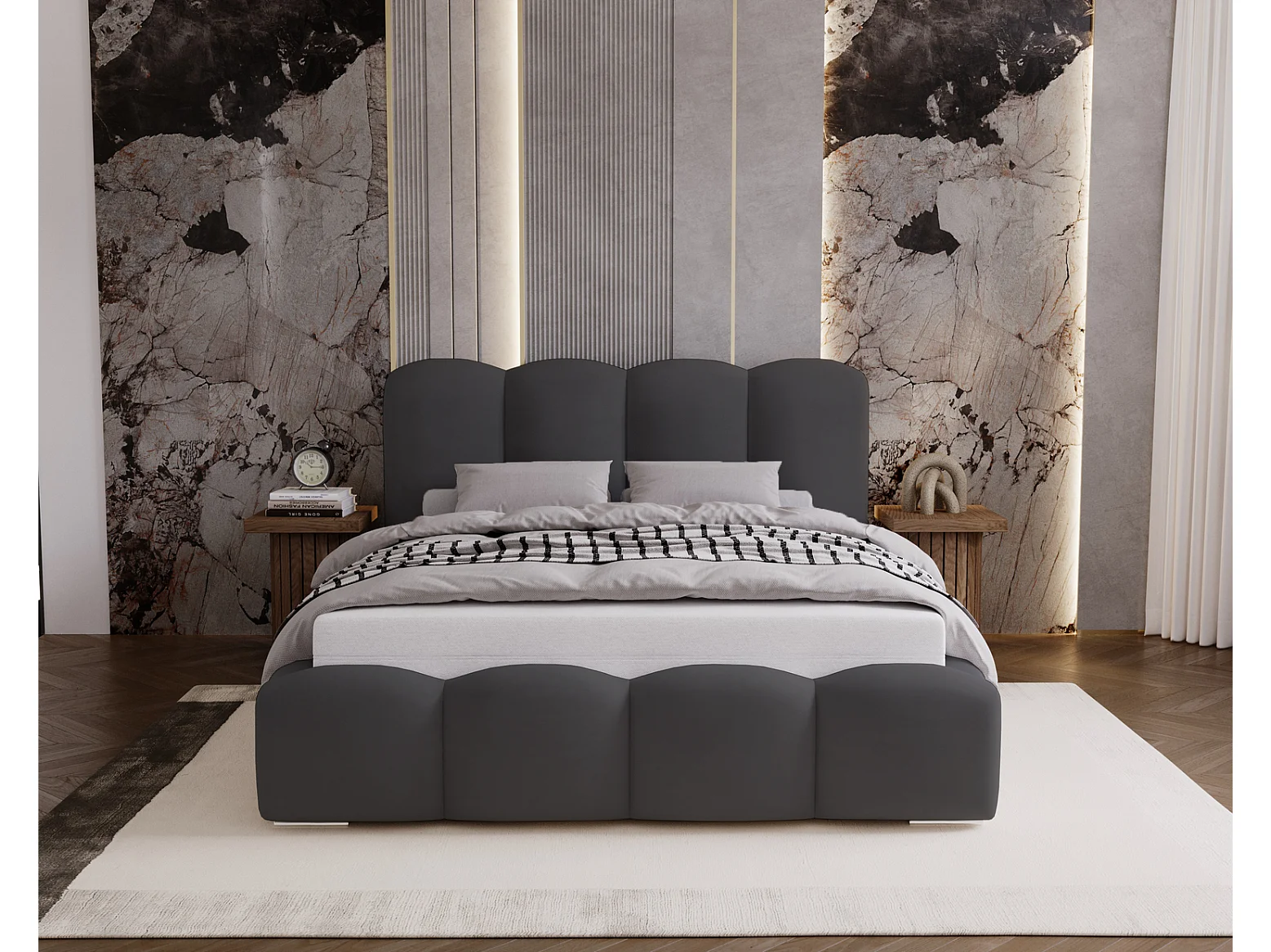 Lit adulte 200x200 Zenna - coffre de rangement, sommier - velours, Gris foncé (Magic Velvet 2271)