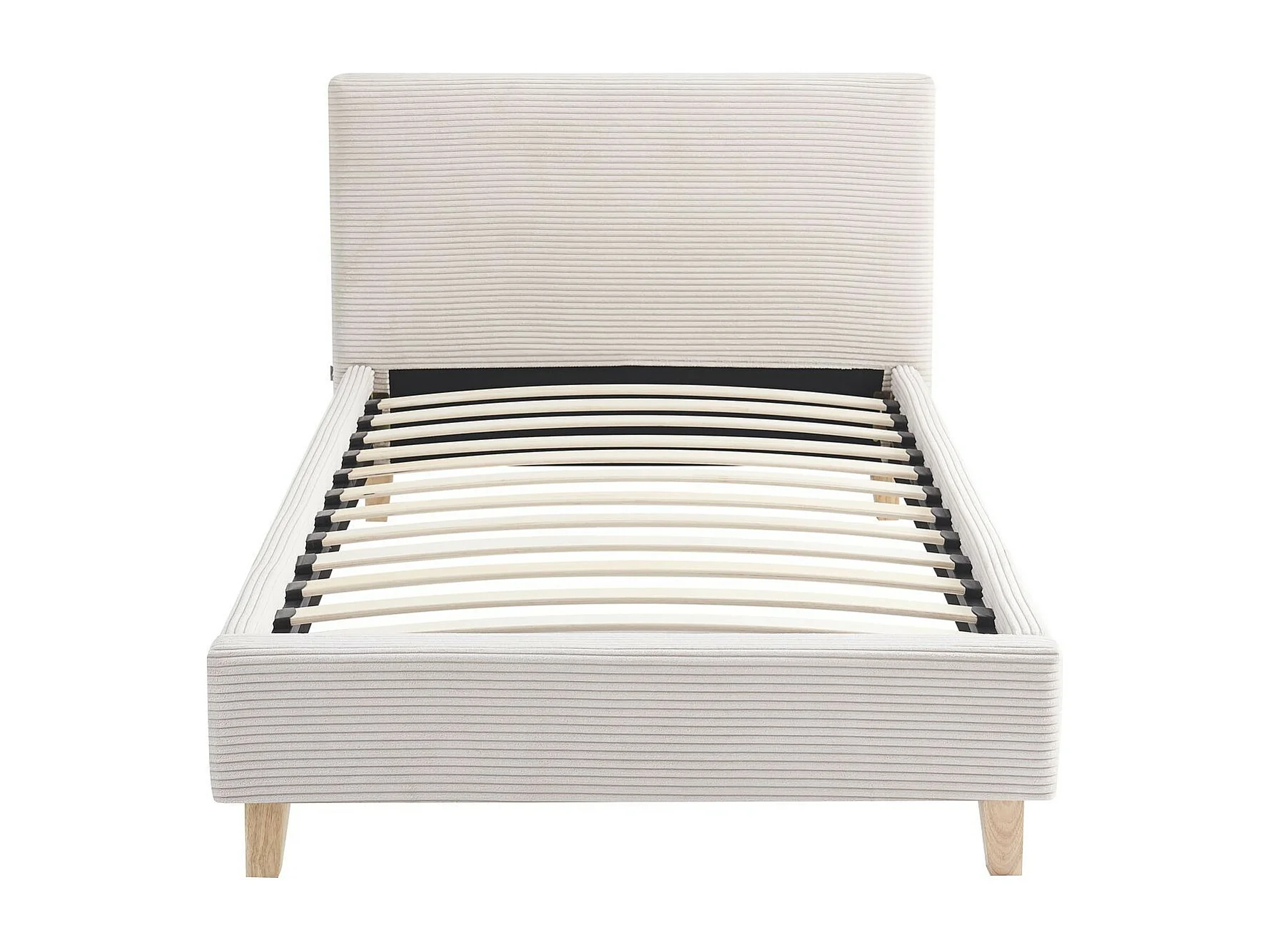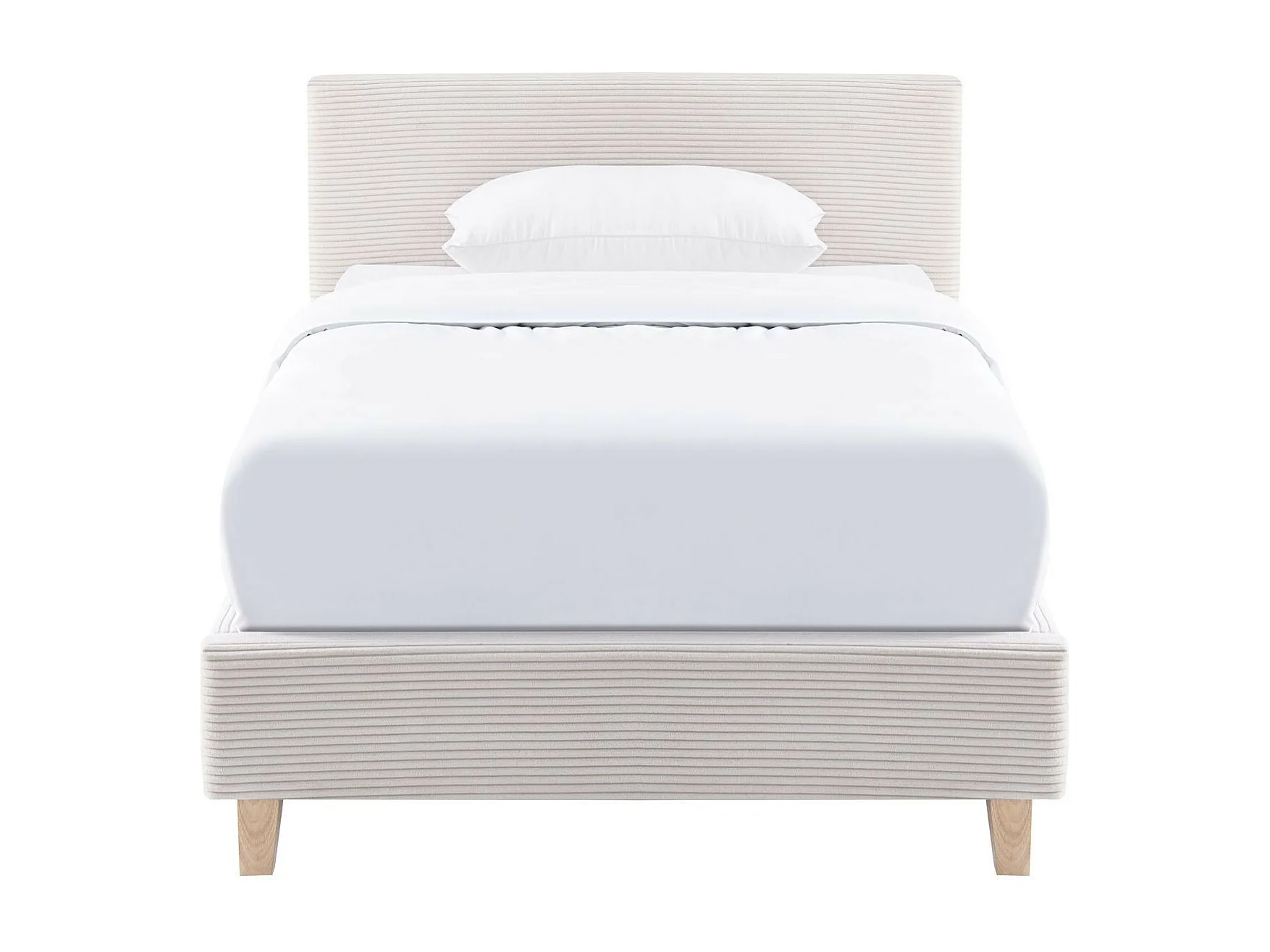 Lit adulte 90x190 cm avec tête de lit capitonnée en velours côtelé beige - Milo