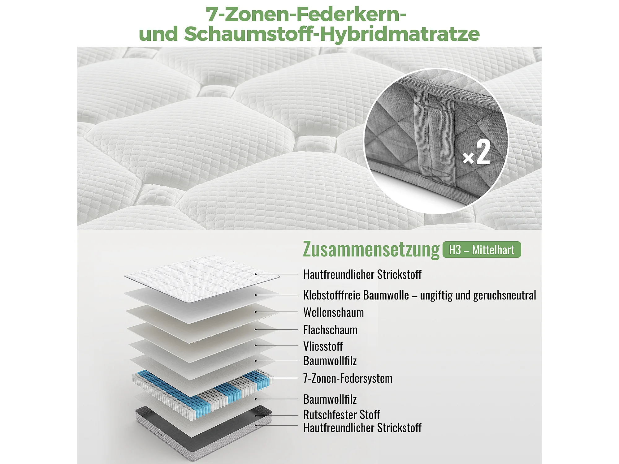 Lit adulte 90x200 cm bois blanc avec LED, ports USB, étagères et tiroirs( Avec matelas)