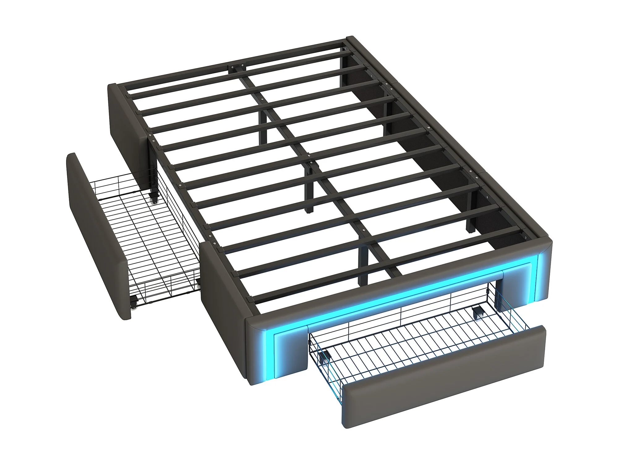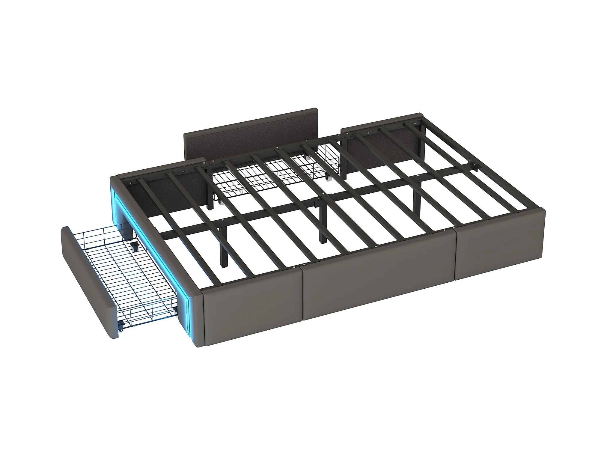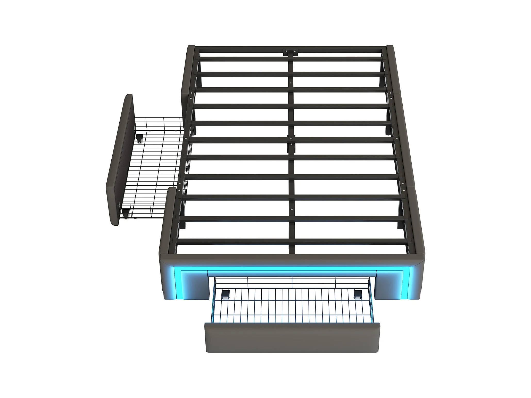 Lit adulte 90X200 cm - Lit simple avec éclairage LED et 2 tiroirs - gris - sans matelas