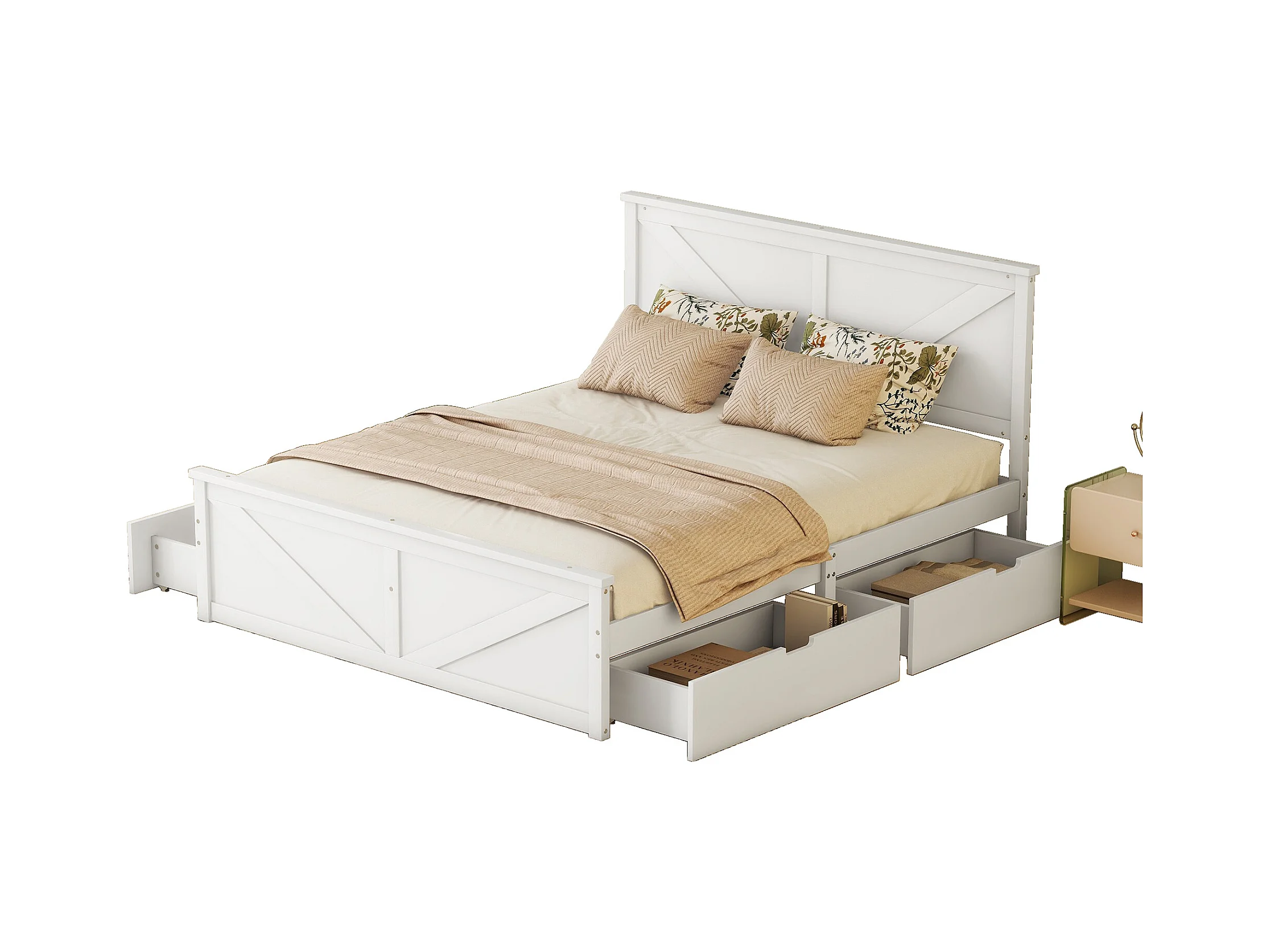 Lit adulte 160x200cm - avec 4 tiroirs - en bois massif - Blanc