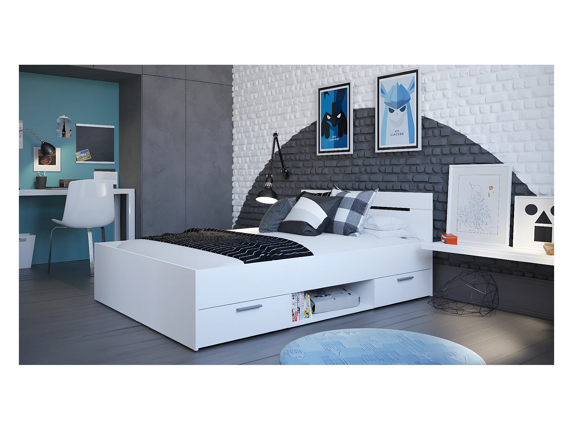 Lit adulte avec rangement coloris blanc mat - 144,1 x 74,2 x 194,7 cm