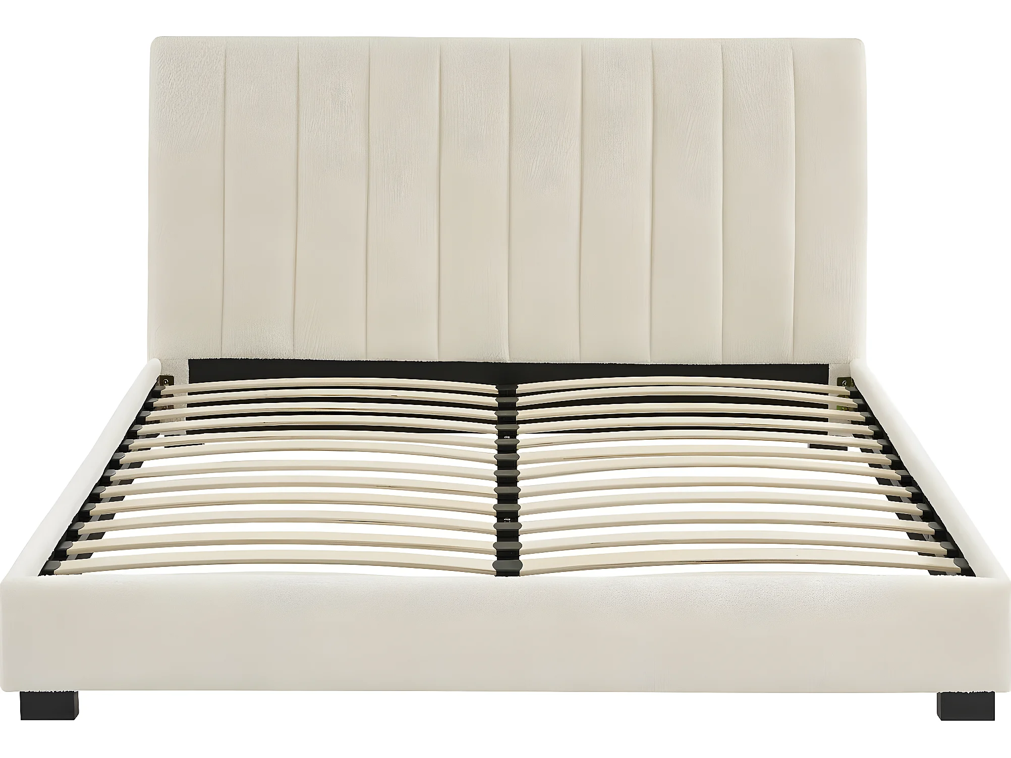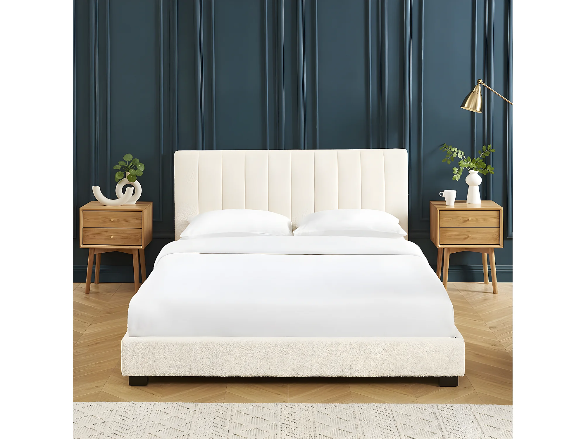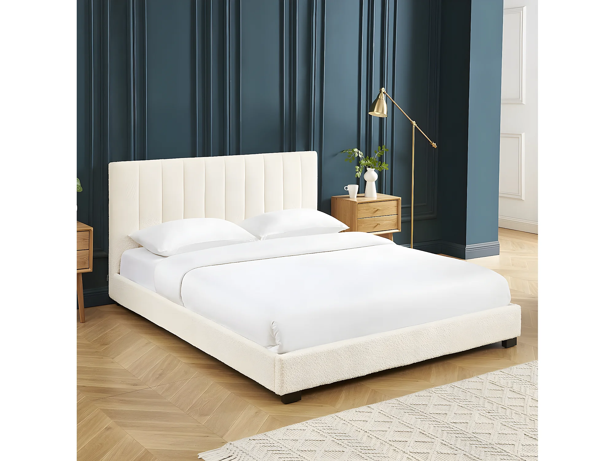 Lit adulte avec tête de lit capitonnée en tissu bouclé écru 160x200 - William