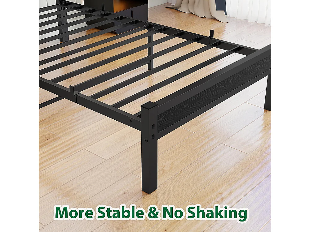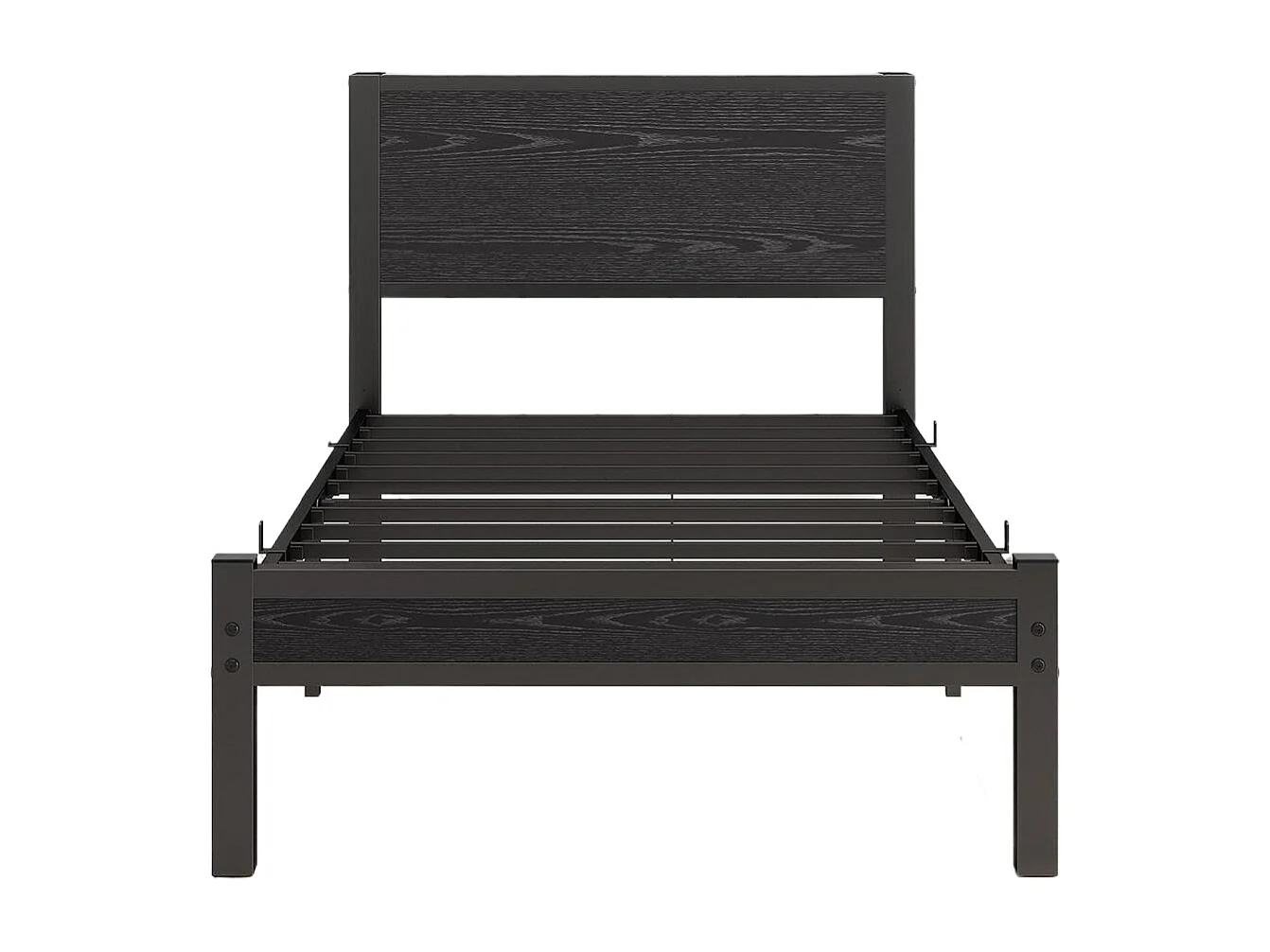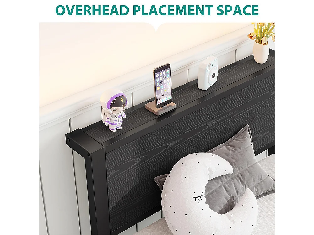 Lit adulte avec tête de lit coffre, fonctionnement silencieux, structure métallique, noir - 90 x 200 cm