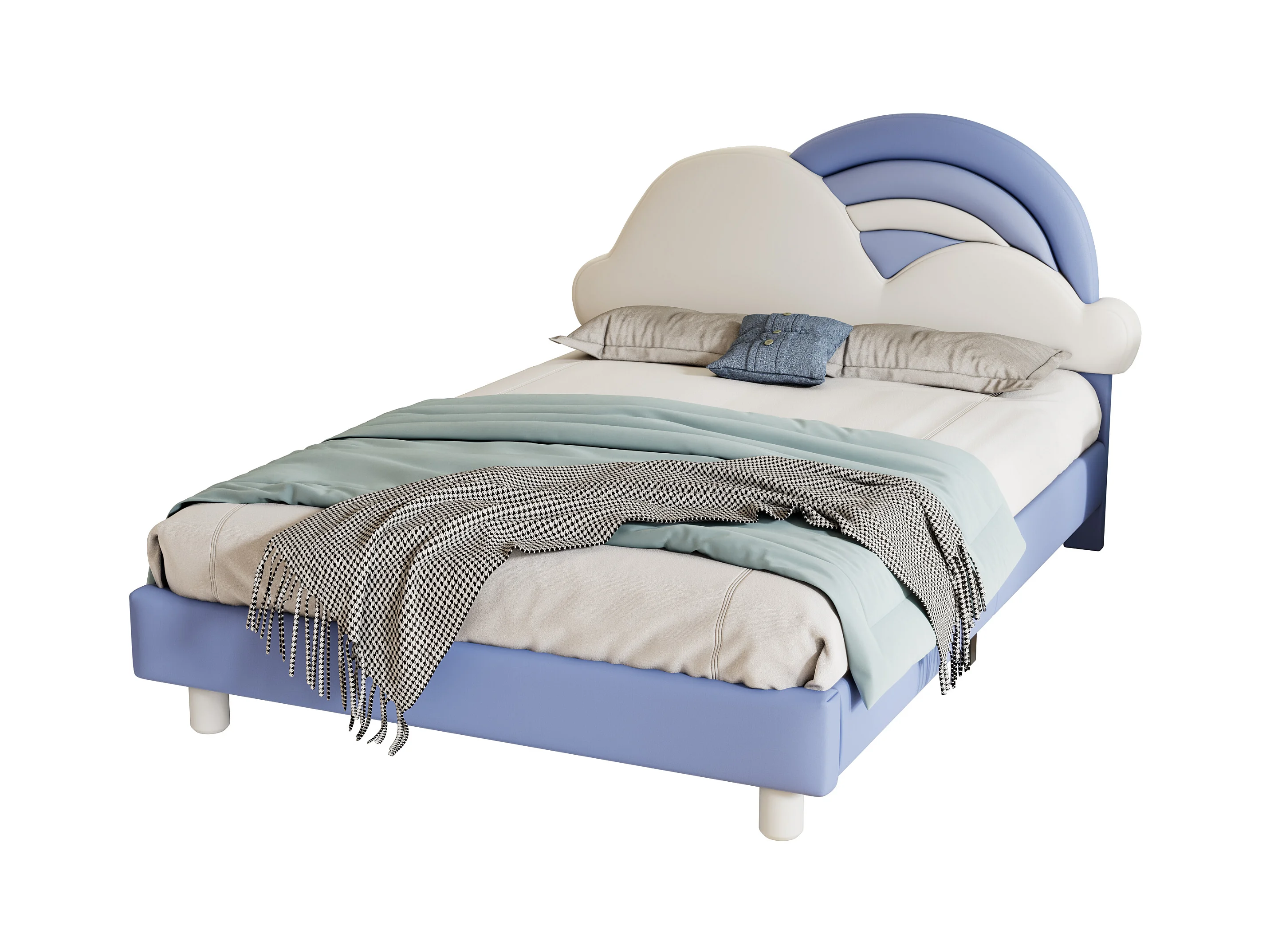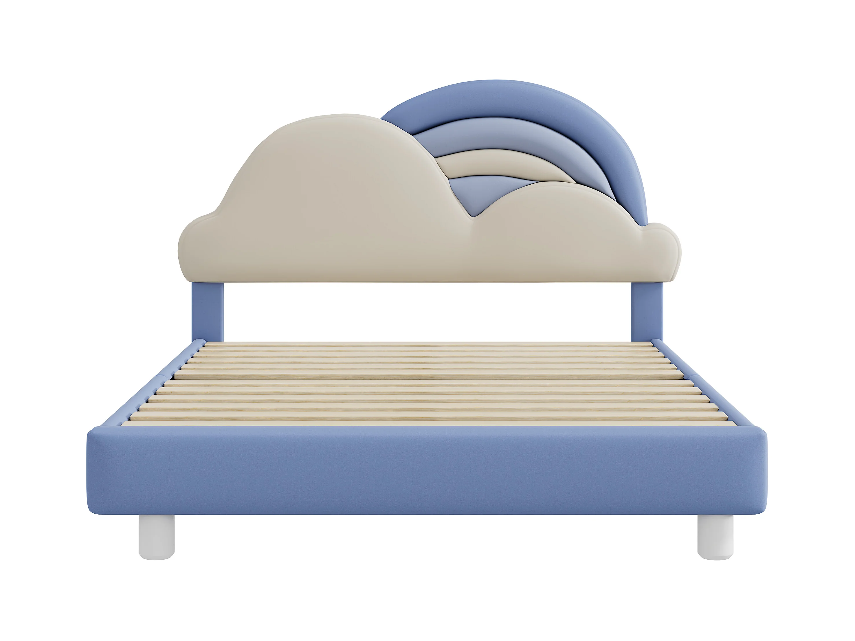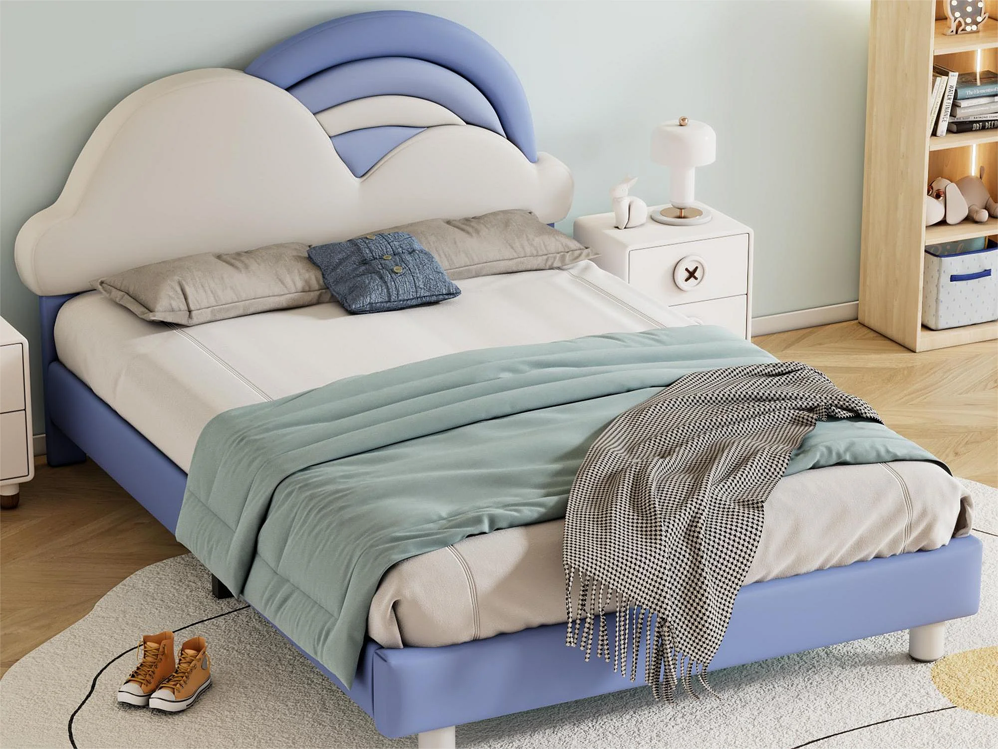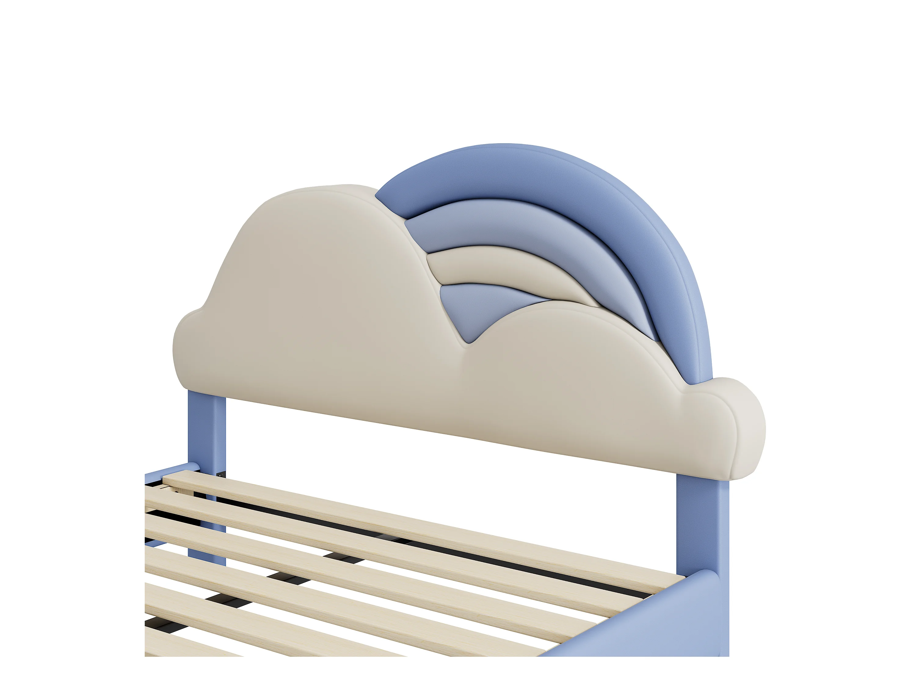 Lit adulte avec tête de lit en forme de nuage - 140 x 200 cm - similicuir - sommier à lattes en bois - bleu