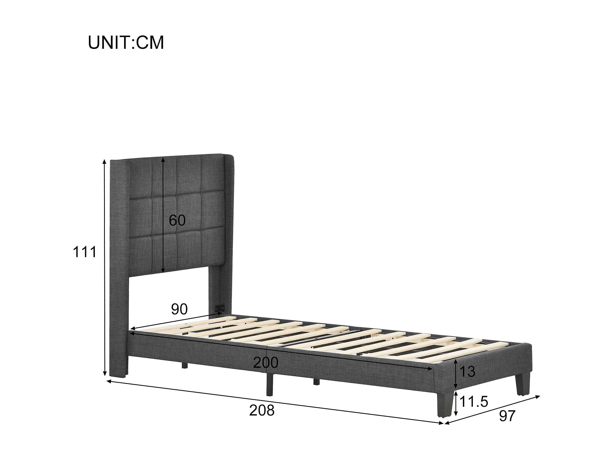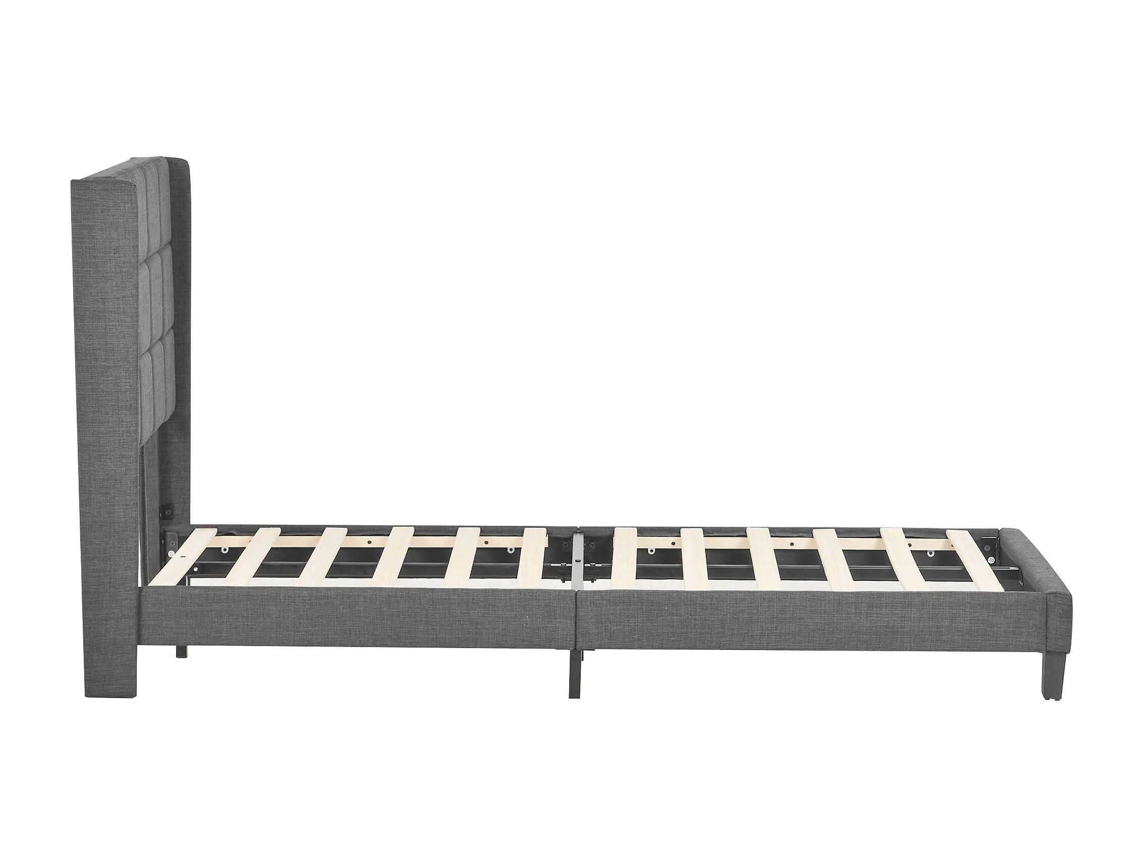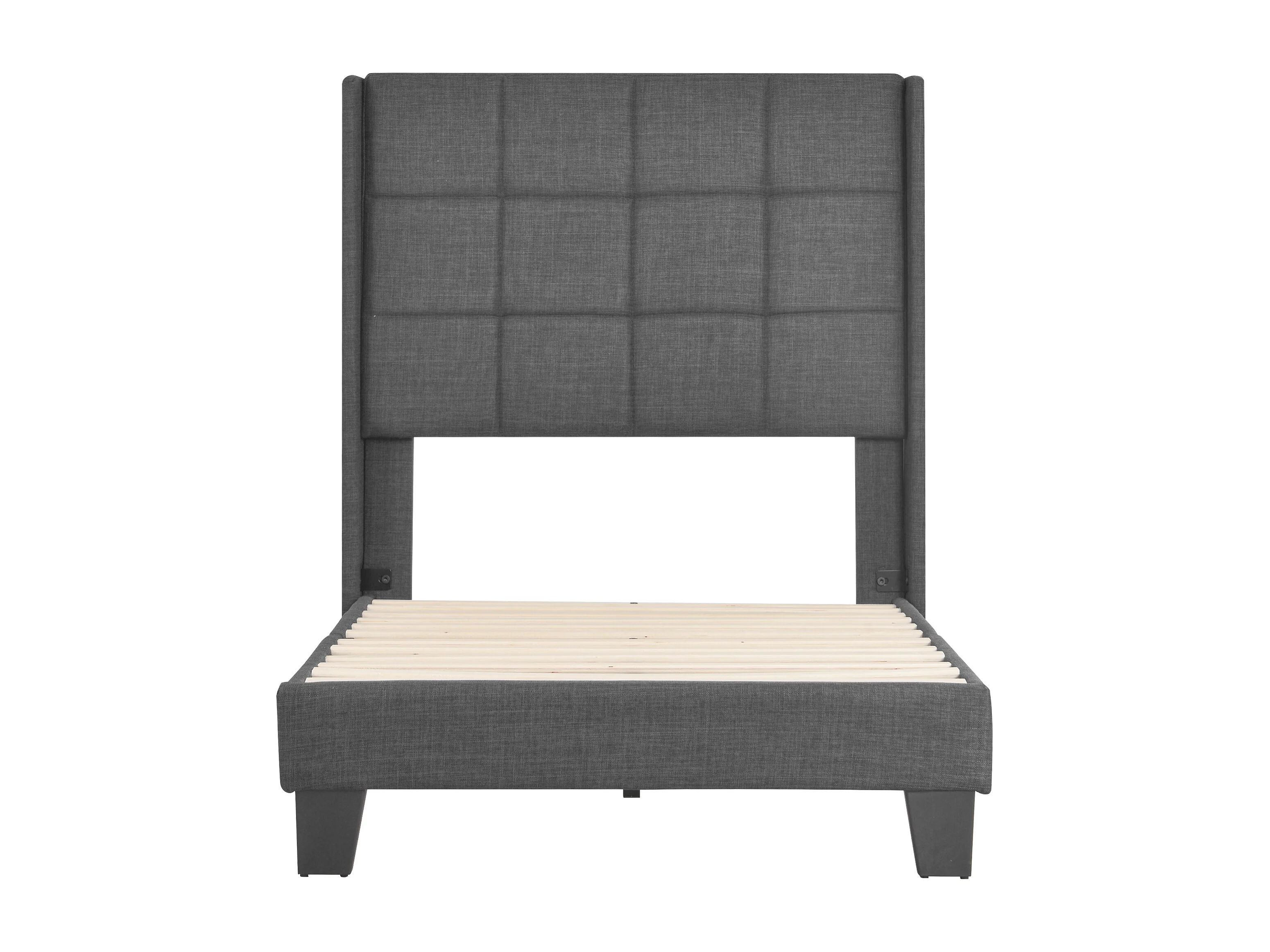 Lit adulte capitonné Tête de lit haute Design moderne 90x200 cm, lin gris - Sweiko
