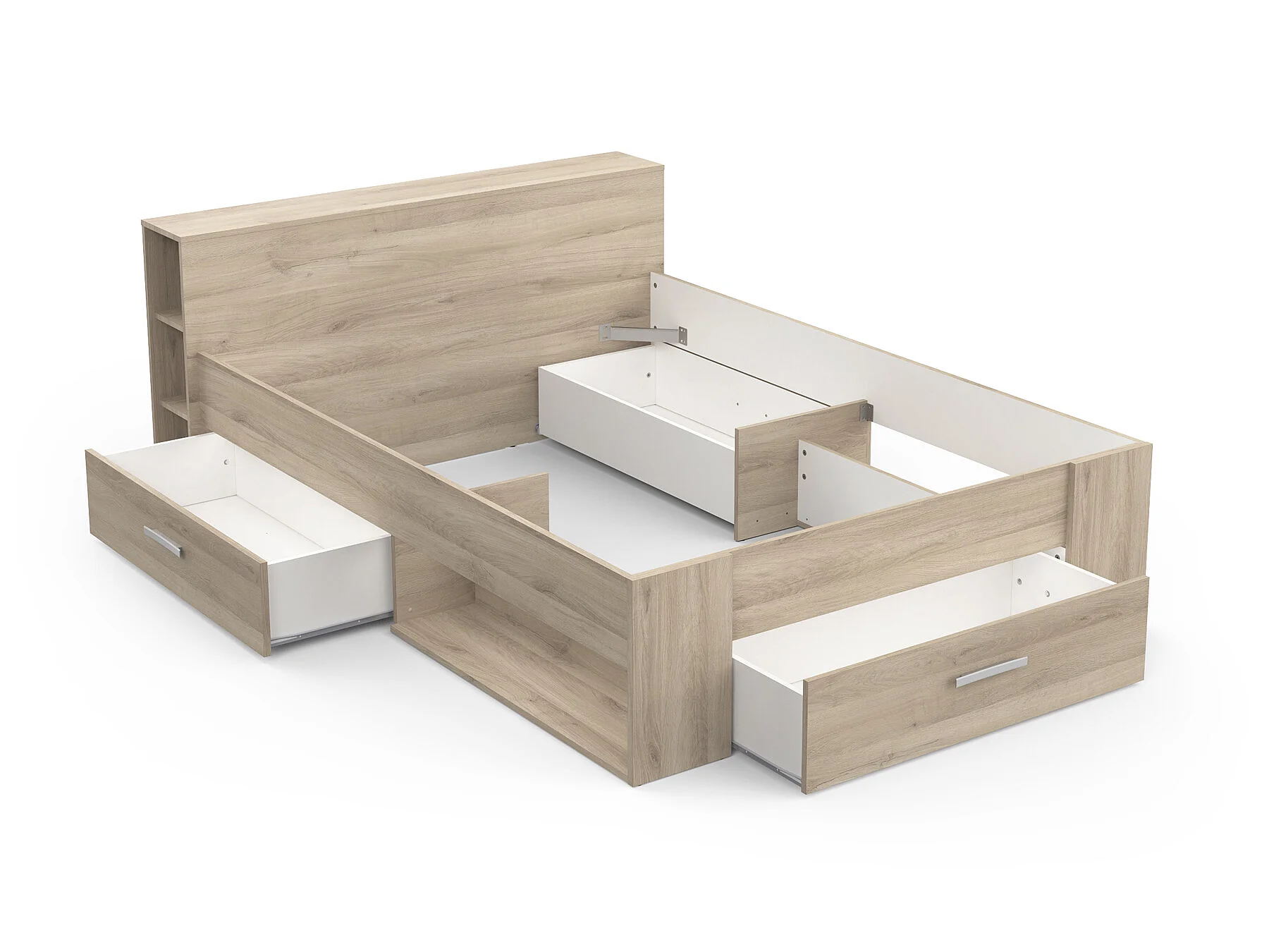 Lit adulte coloris chêne kronberg - longueur 150 x profondeur 217 x hauteur 74 cm