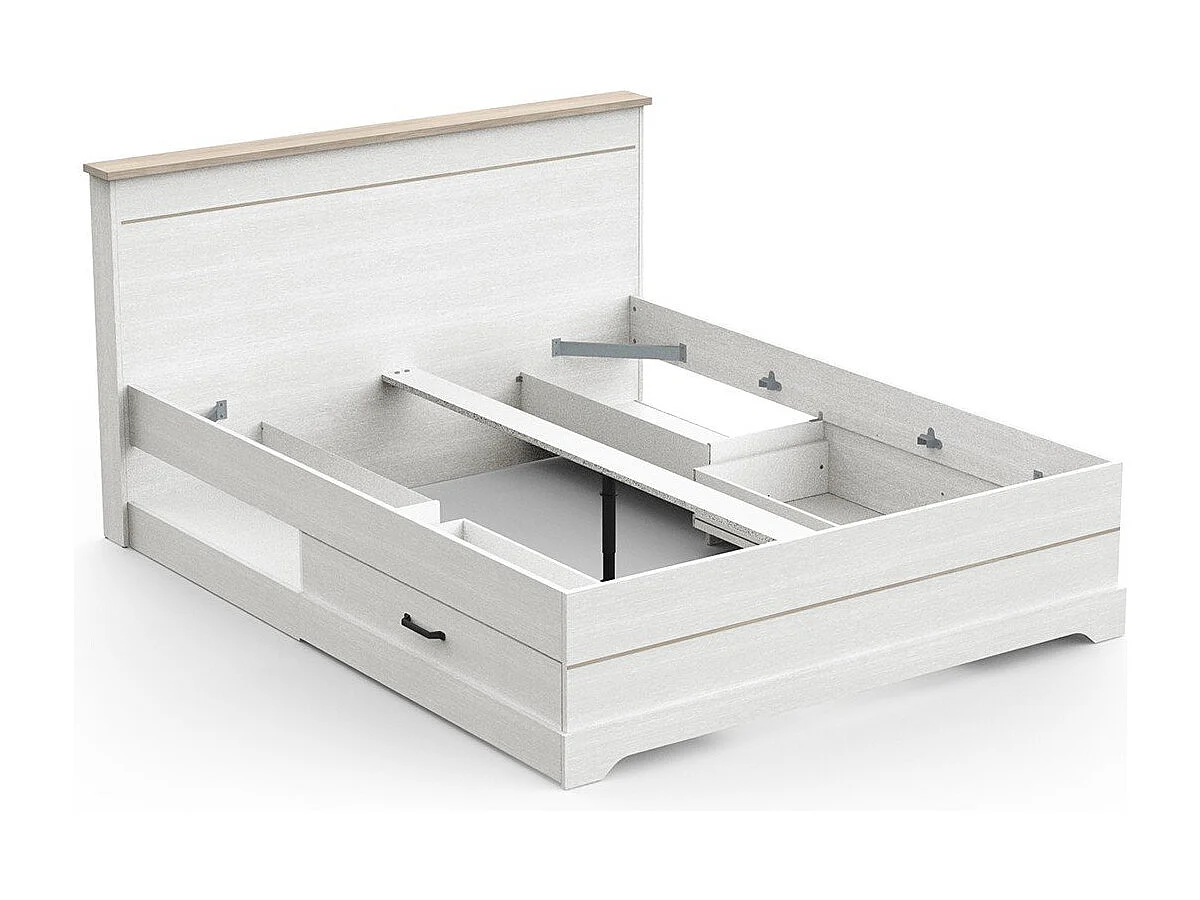 Lit 2 tiroirs et 2 niches 160x200 cm blanc Cottage
