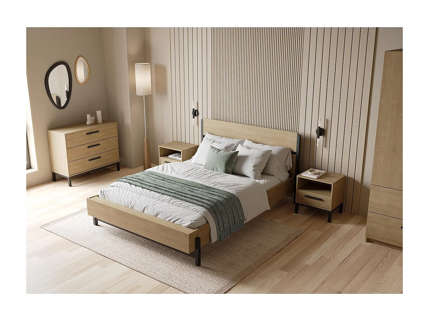 Lit adulte - CRAFT - Noir et chêne - 140 x 190/200 cm - DEMEYERE